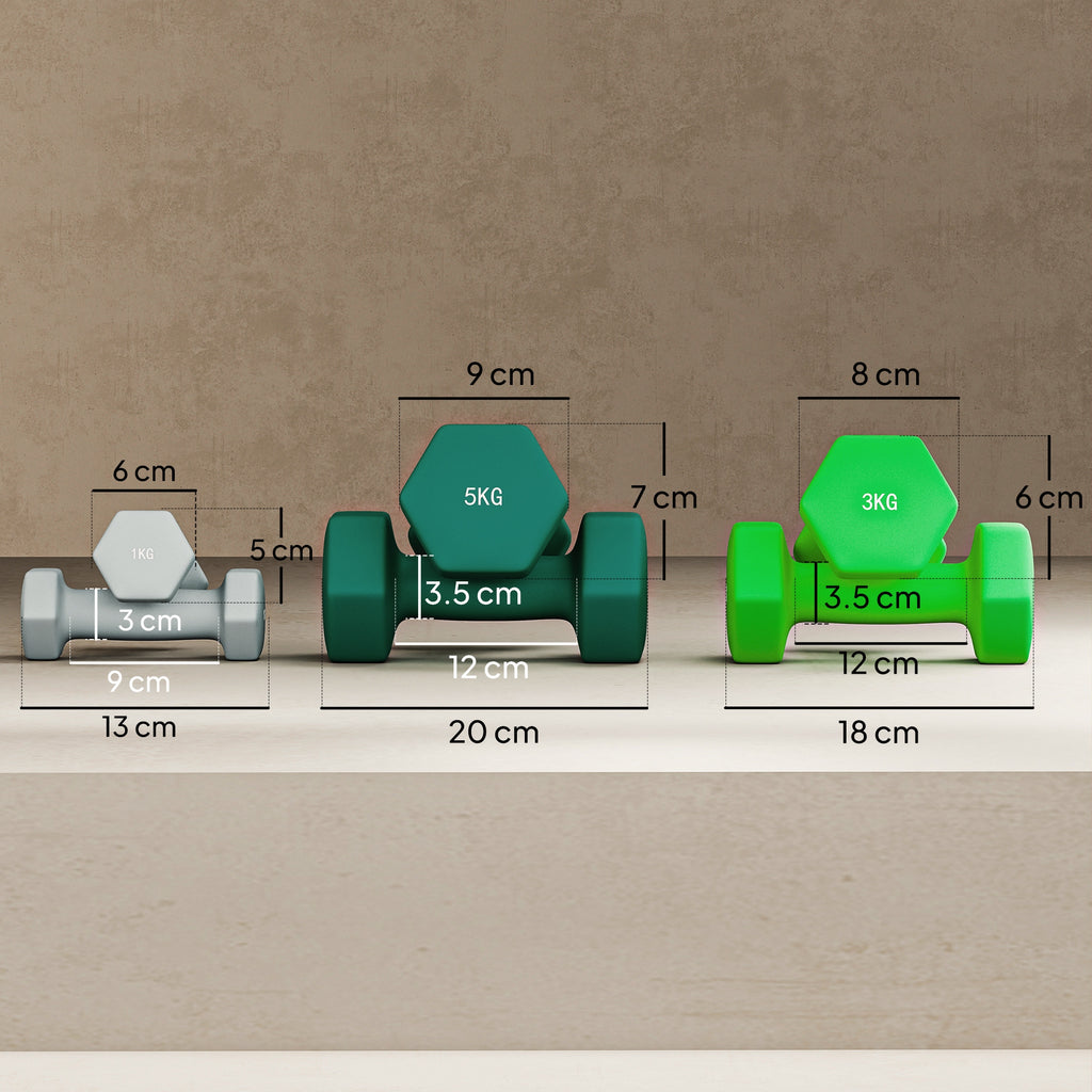 - SET COMPLETO E VARIEGATO: La confezione del nostro set si compone di 3 coppie di manubri da 1 kg, 3 kg e 5 kg, perfetti per variare l'intensità degli allenamenti e aumentare la difficoltà del tuo workout