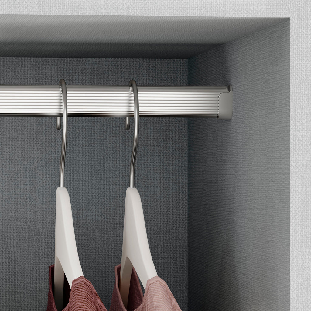 Il tubo appendiabiti è disponibile in due misure: 750mm e 1150mm. Nei kit da 1150 mm se includono inoltre 2 supporti centrali per fornire maggiore rigidità al tutto.