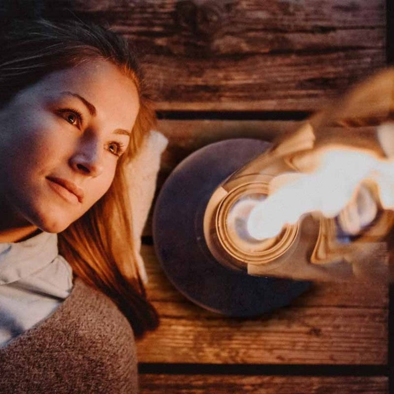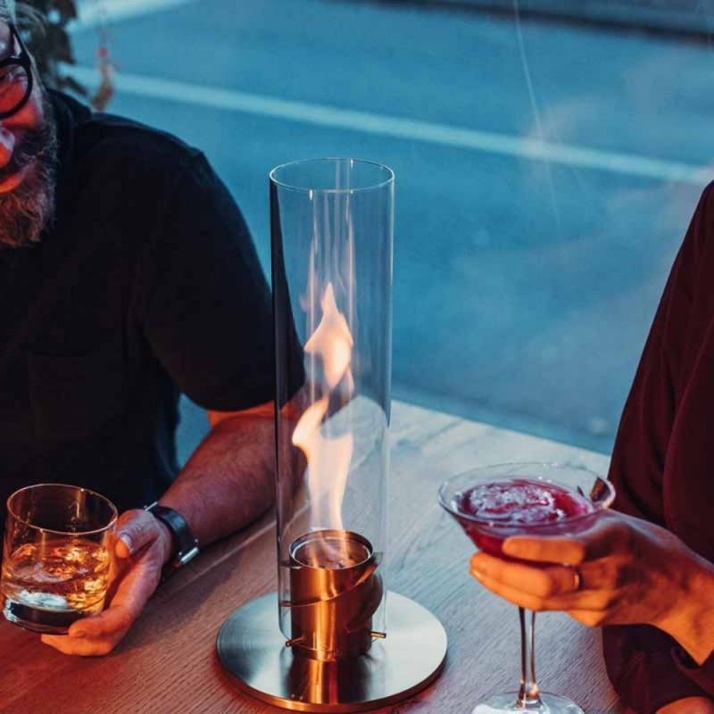 La lampada da tavolo a Bioetanolo racchiude un affascinante vortice di fiamma in un cilindro di vetro decorativo che evoca l'atmosfera del falò sul balcone e sulla terrazza. Il suo design conferisce al prodotto un'estetica di prima classe e una funzionalità unica e ingegnosa. Il bellissimo gioco di fiamma nasce dal bioetanolo che alimenta la lampada, fornendo così luce e calore per un'ora e mezza.
