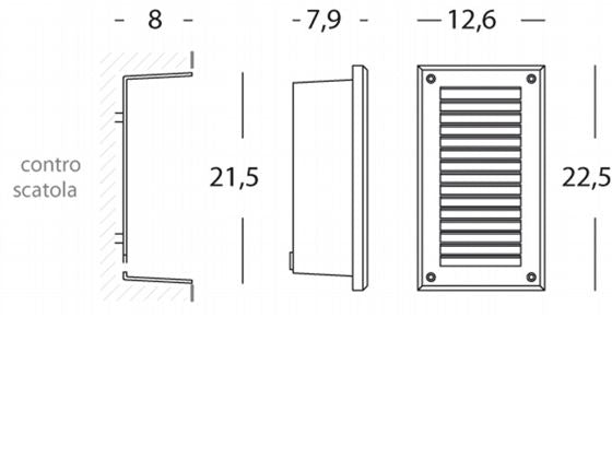 Lampada a incasso verticale colore grigio per esterno linea route. Cornice e corpo completamente in pressofusione di alluminio. Trattamento anticorrosivo con Verniciatura a polveri epossidiche. Diffusore in vetro satinato. Contro-scatola in termoplastico ad alta resistenza. Guarnizione siliconica, viti in acciaio inox ed accessori per il fissaggio. Portalampada in porcellana con attacco E27. Adatta per lampade ad incandescenza e risparmio energetico. Lampada esclusa. Alimentazione 230V ~ 50Hz. Classe di protezione: IP54 Potenza massima lampade: 60W