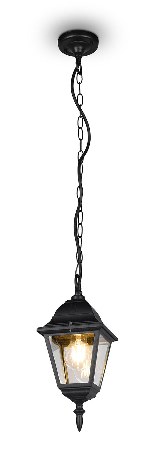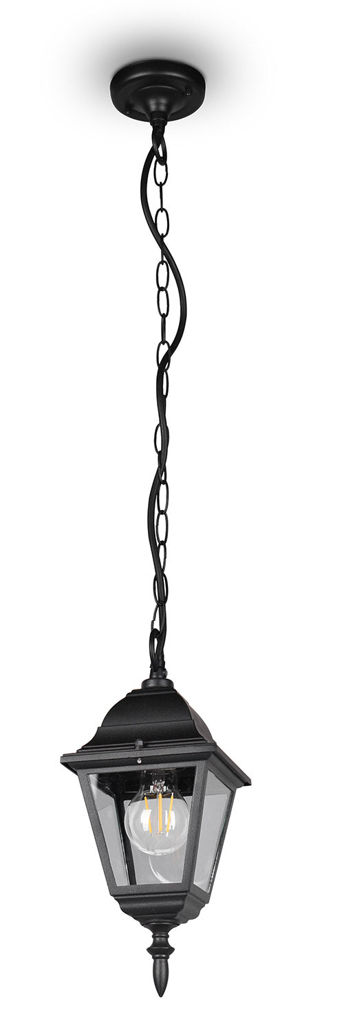 Livenza Sospensione Da Esterno 4 Lati Fusione di Alluminio Nera e Vetro Trasparente H. 83Cm Ip44