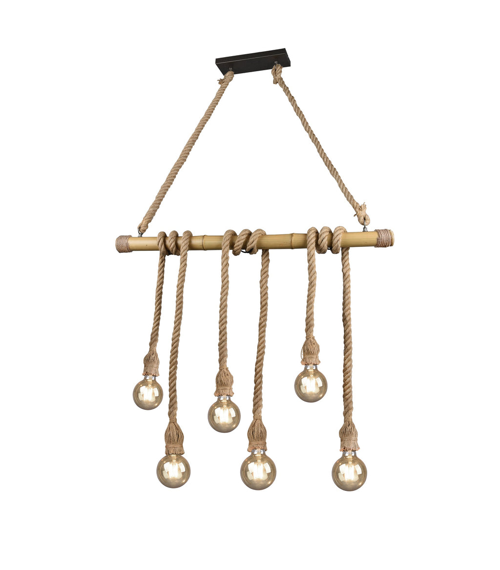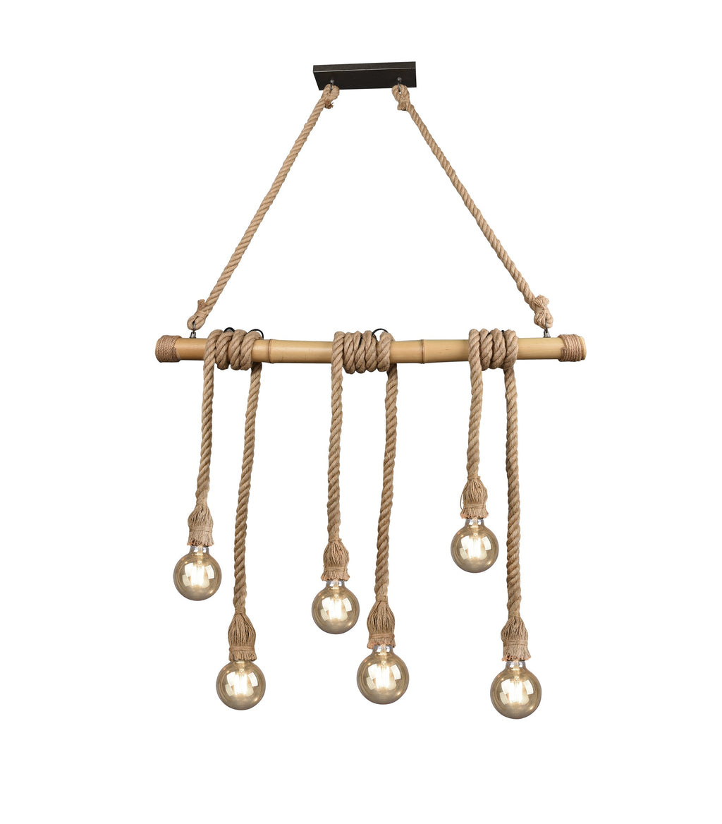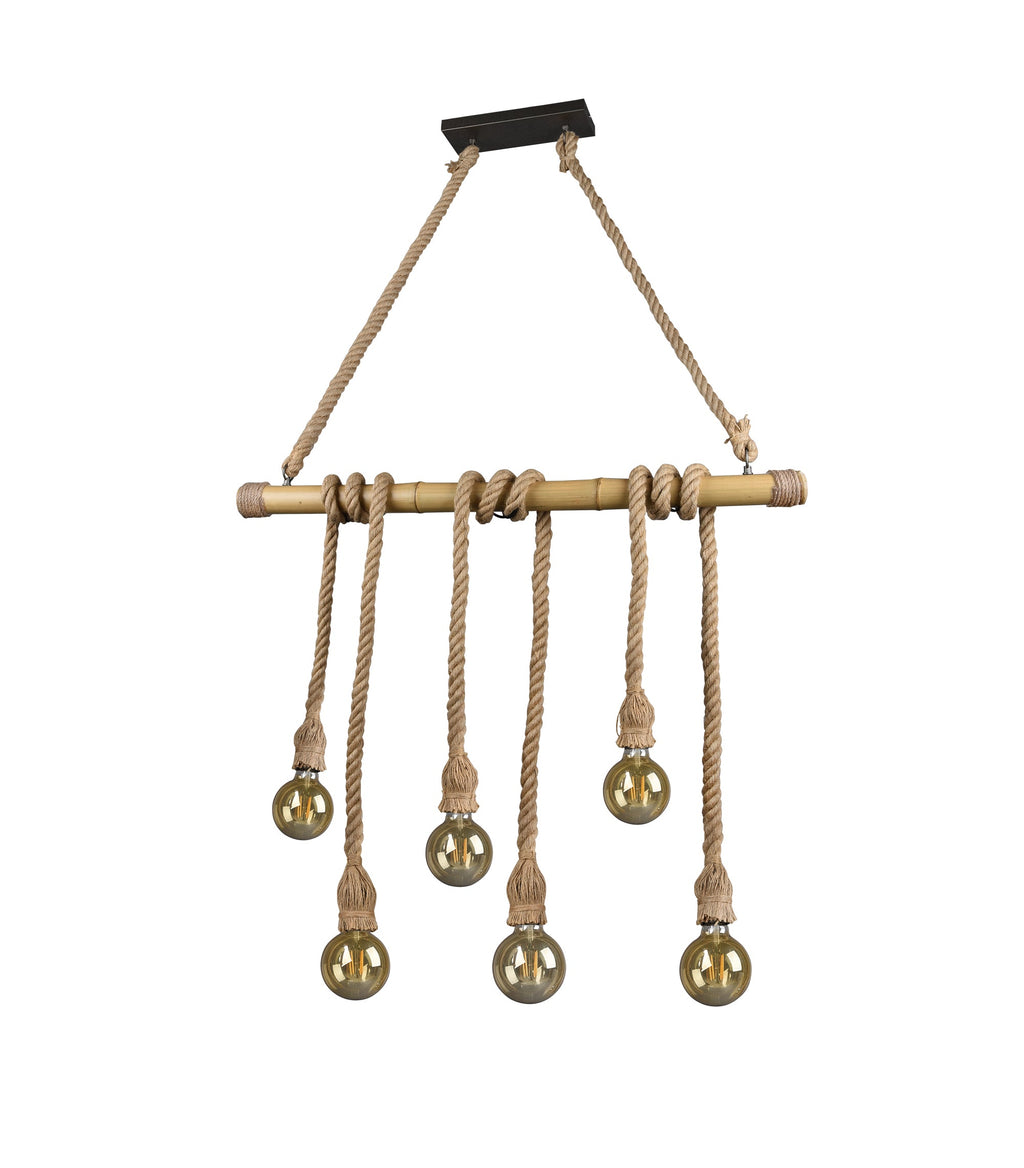 Wilma Sospensione Barra Bambu' Con Corde 6 Luci L. 100Cm
