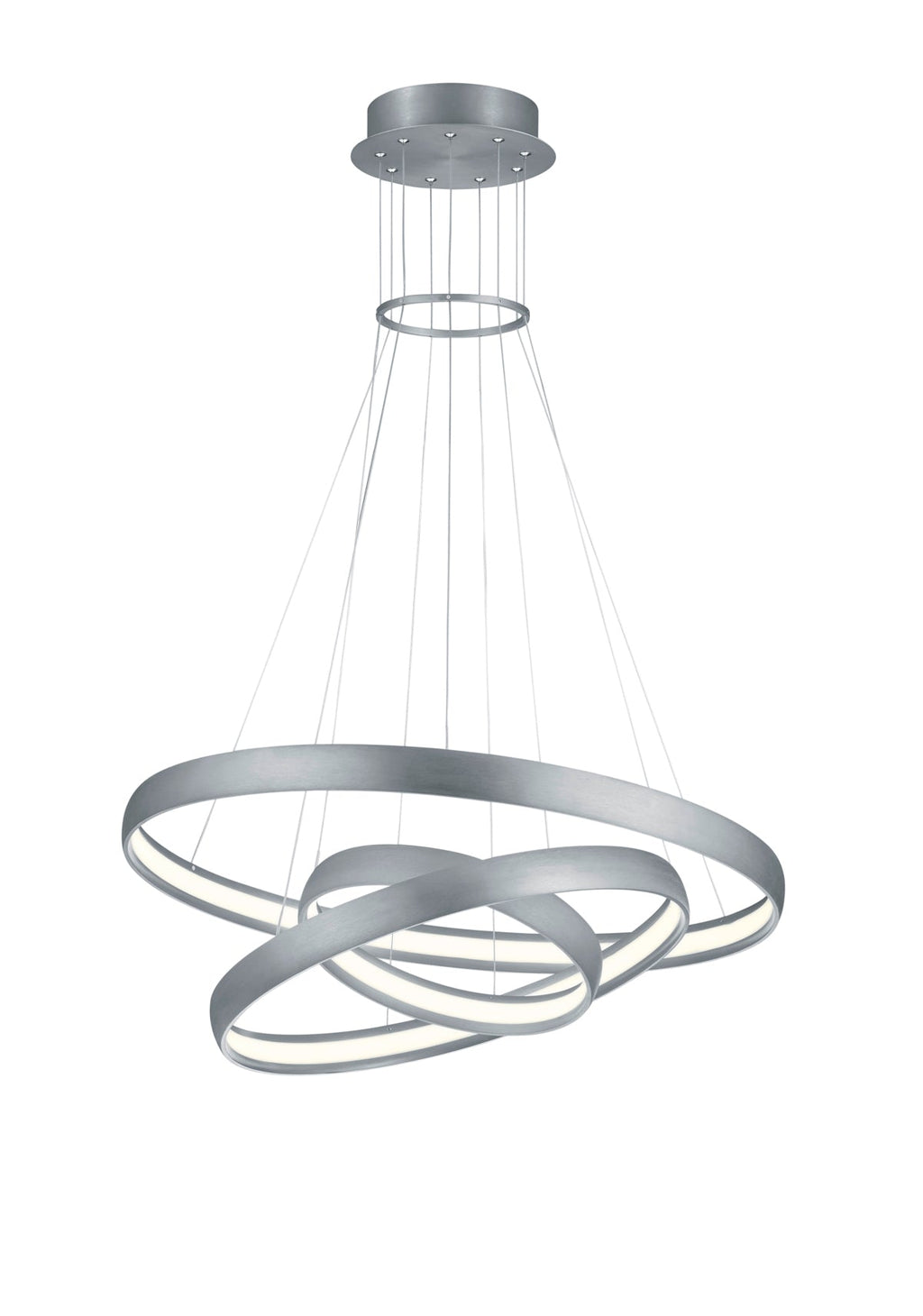 Macau Sospensione Led 3 Cerchi Alluminio Regolabili Ed Orientabili Dimmerabili Con Normale Interruttore A Scatto D. 75Cm, H. 150Cm
