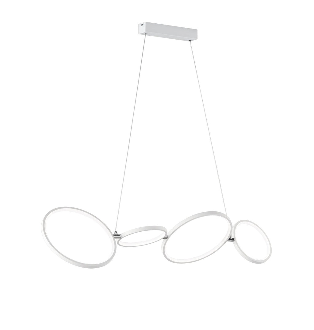 Rondo Sospensione Led 4 Cerchi Metallo Bianco Opaco Con Variazione Intensita' Con Interruttore A Parete L. 110Cm