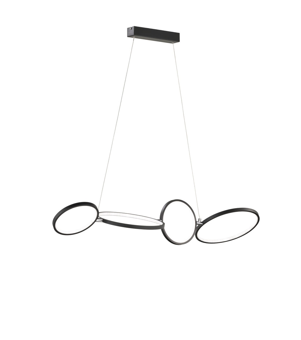 Rondo Sospensione Led 4 Cerchi Metallo Nero Opaco Con Variazione Intensita' Con Interruttore A Parete L. 110Cm