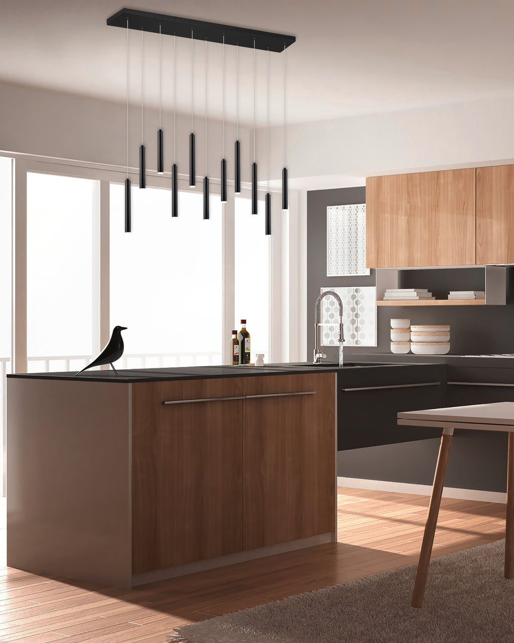Tubular Sospensione Led Rettangolare 11 Tubi Nera Intensita' Regolabile Con Interruttore D. 2,2 L. 115Cm