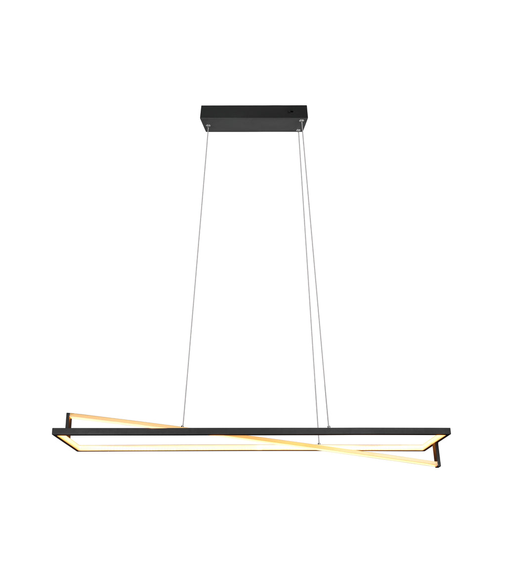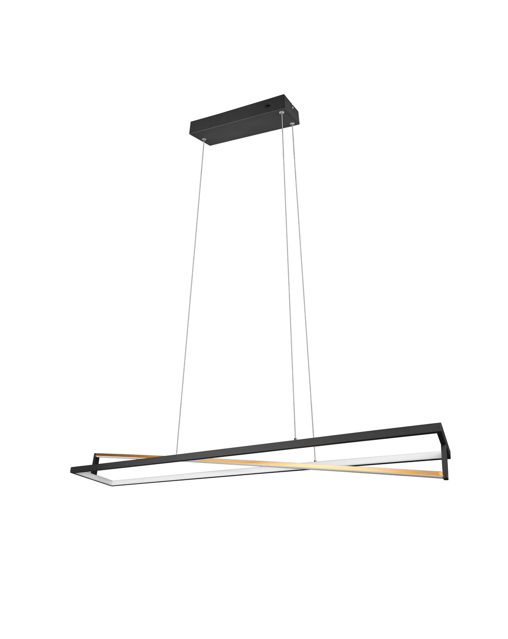 Edge Sospensione Led Rettangolare Nero E Ottone Satinato Con Regolazione Temperatura Di Colore E Dimmerazione Intensita' Con Interruttore L. 118,5Cm