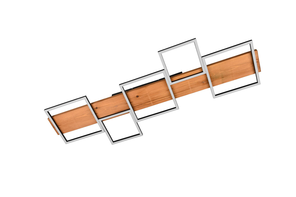 Harper Sospensione Led Legno Naturale e Metallo Nero 5 Quadrati con Regolazione Intensità con Normale Interruttore A Parete L. 115Cm