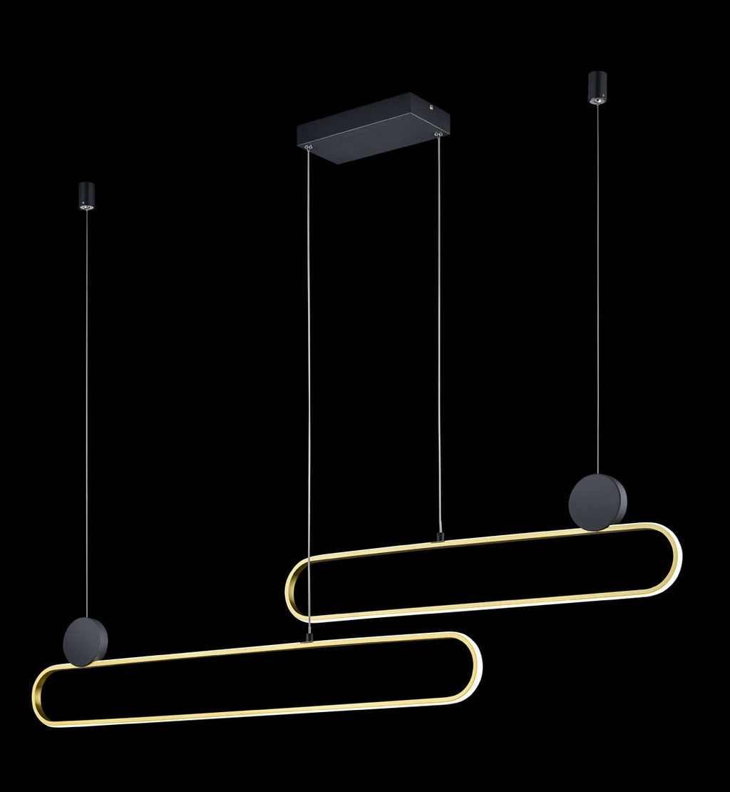 Grant Sospensione Led Metallo Ottone e Nero con Regolazione Intensità e Temperatura di Colore Della Luce con Interruttore L. 139Cm