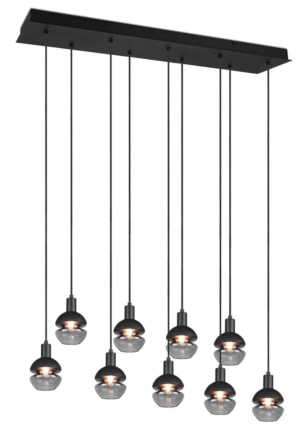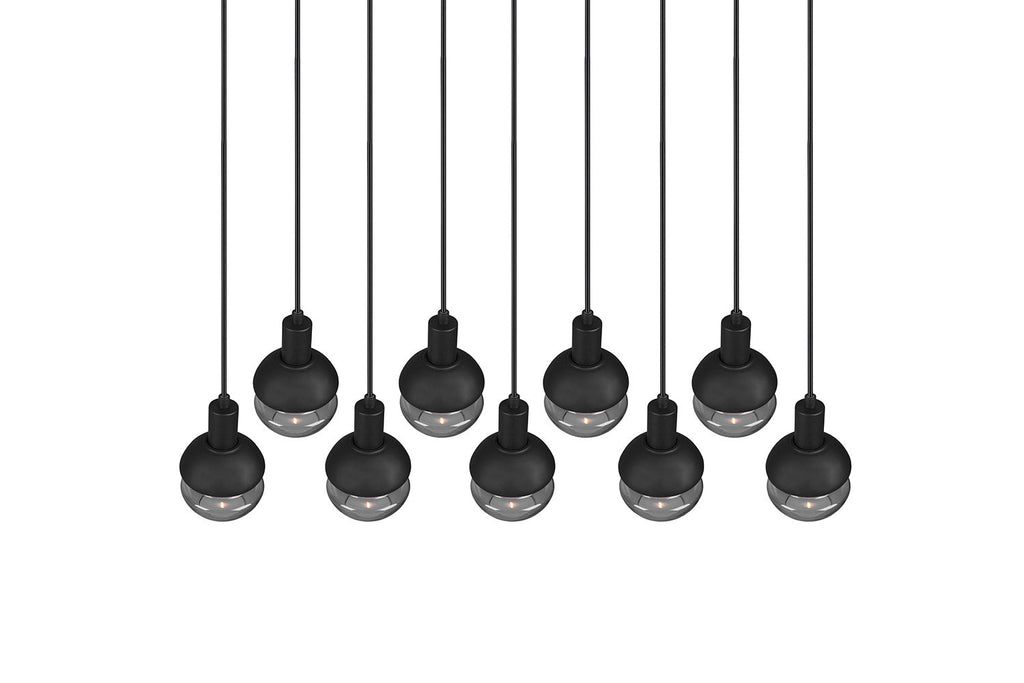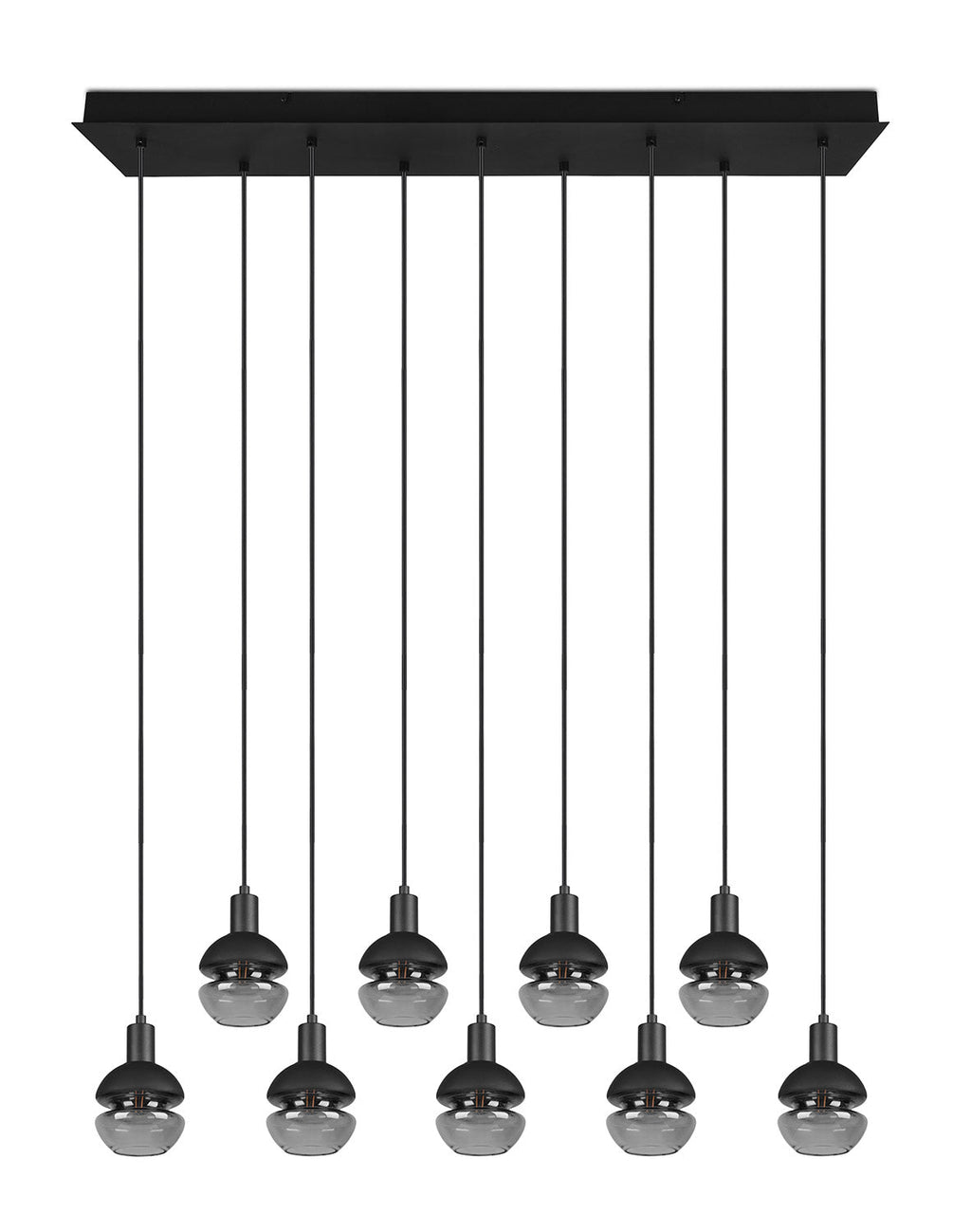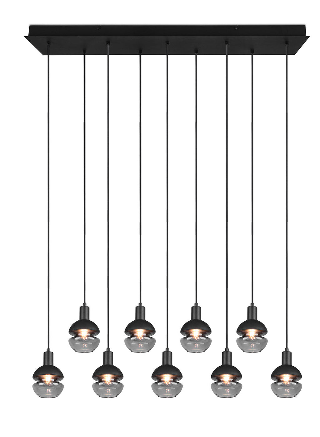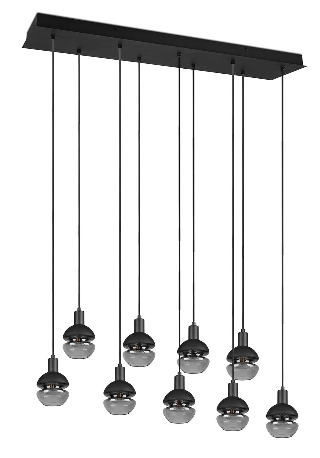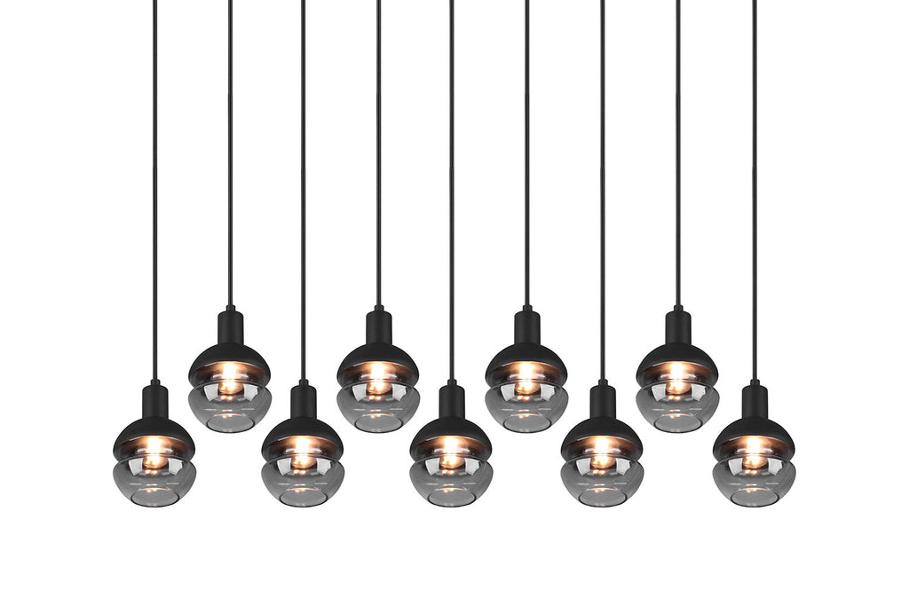 Mela Sospensione Metallo Nero con 9 Vetri Neri e Trasparenti L. 102Cm