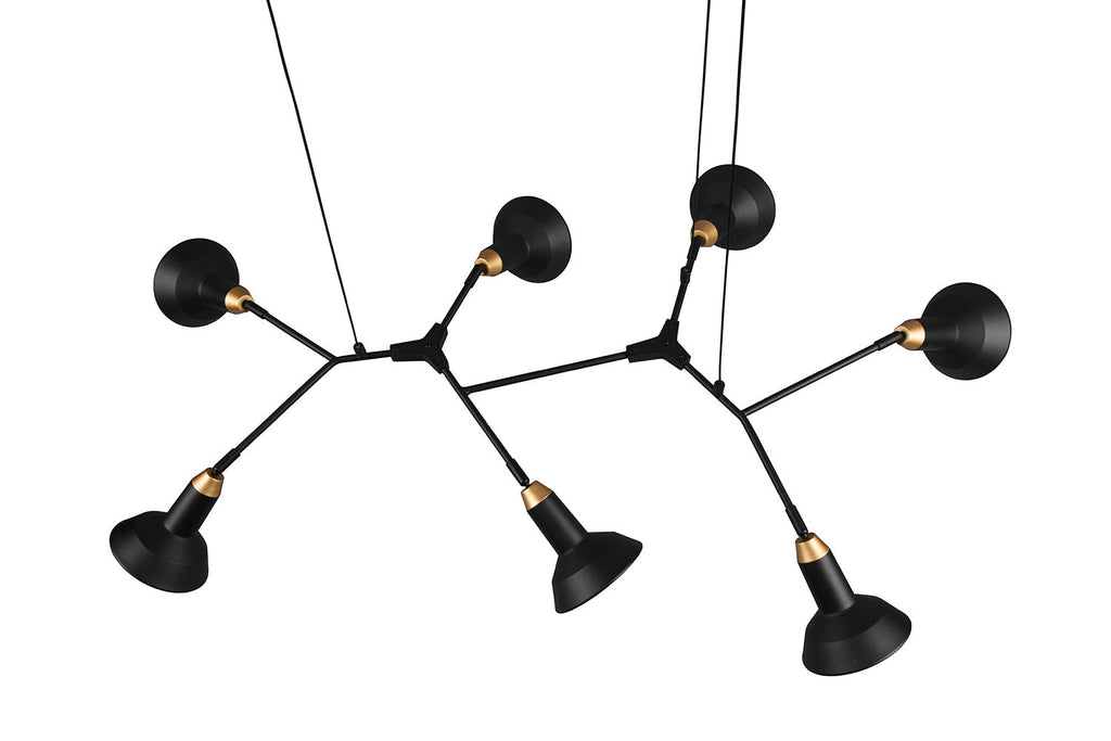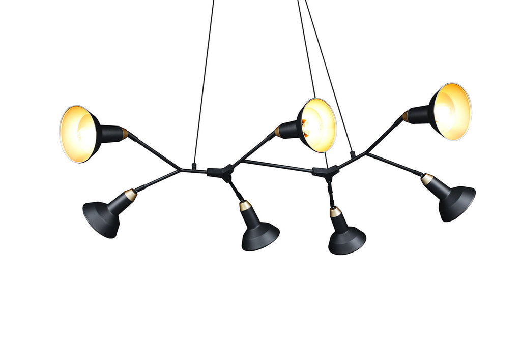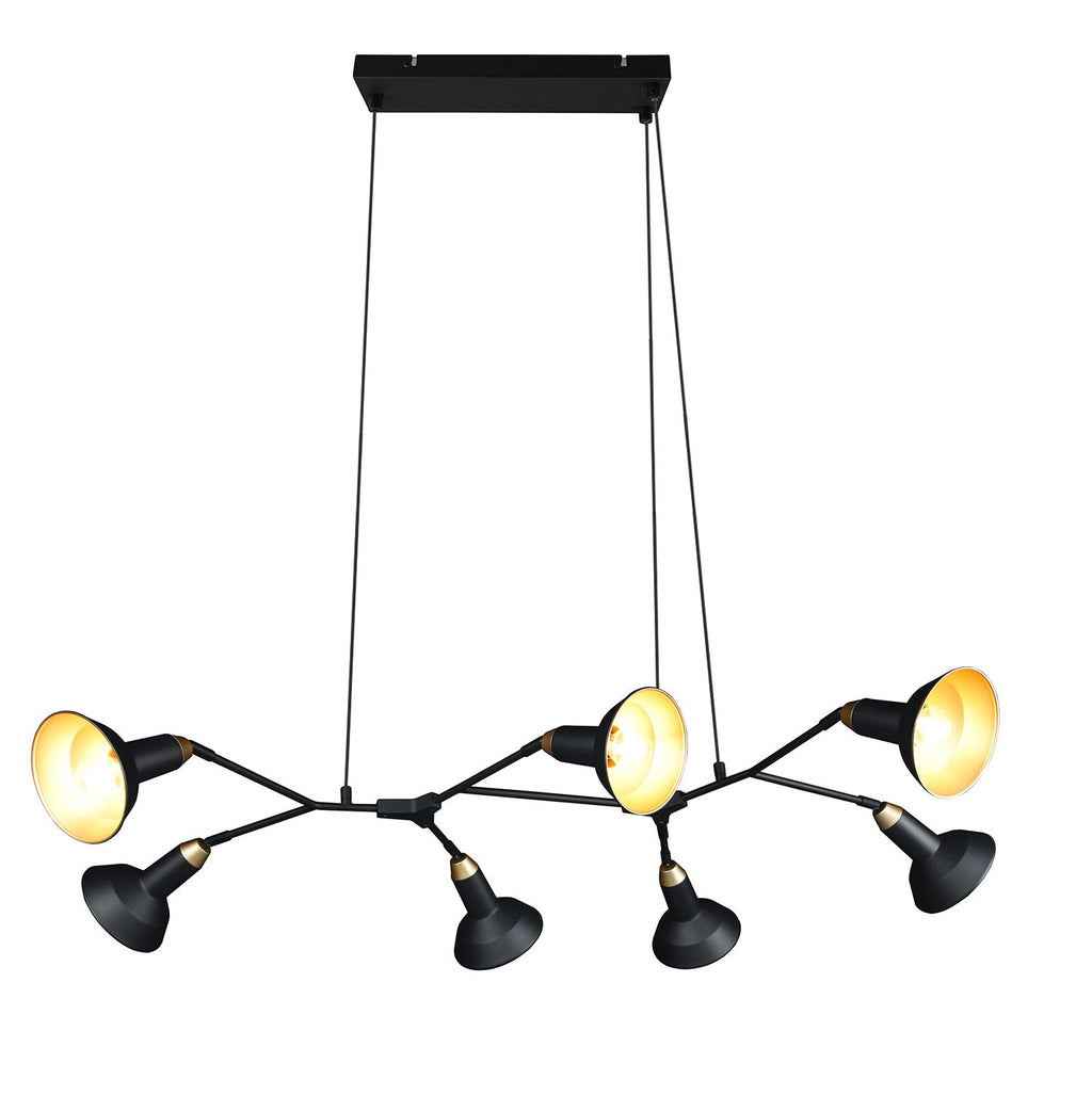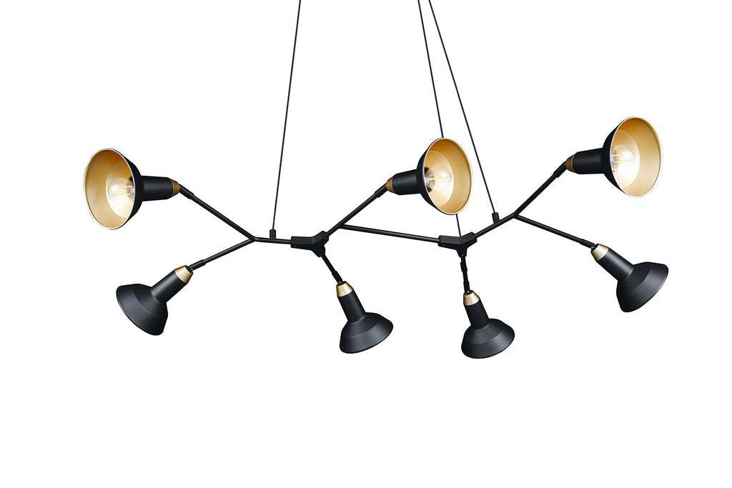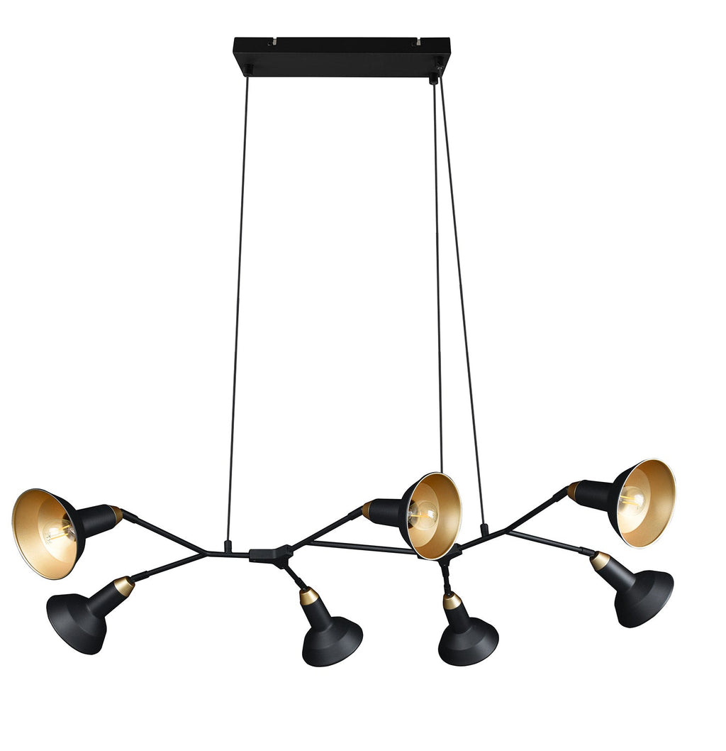 Roxie Sospensione 7 Diffusori Orientabili Metallo Nero e Oro L. 113Cm