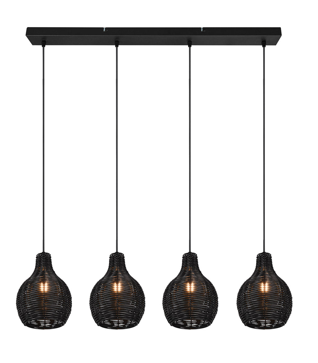 Sprout Sospensione 4 Diffusori in Sisal Colore Nero Opaco L. 85Cm