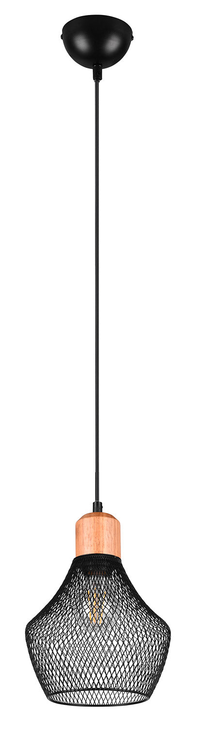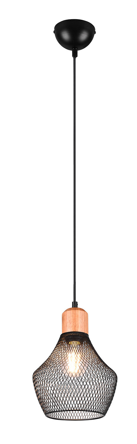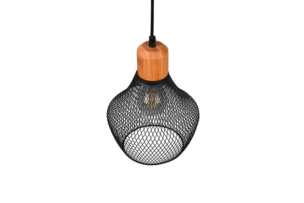 Valeria Sospensione Metallo Gabbia Nera con Particolare in Legno Naturale D. 18Cm