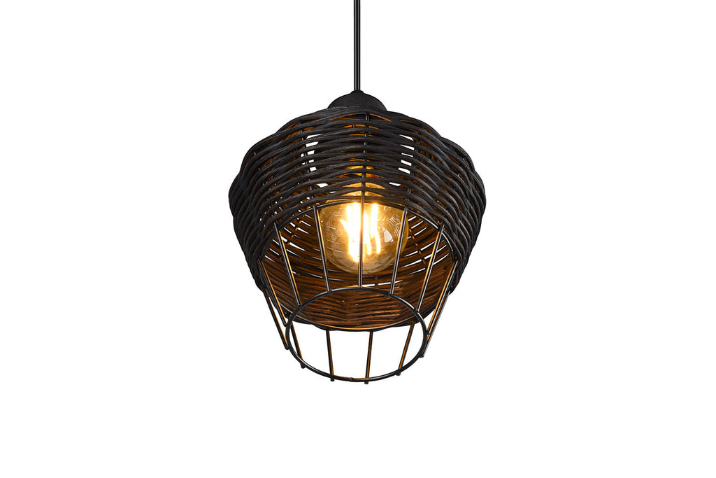 Borka Sospensione in Rattan Colore Nero Opaco D. 18Cm
