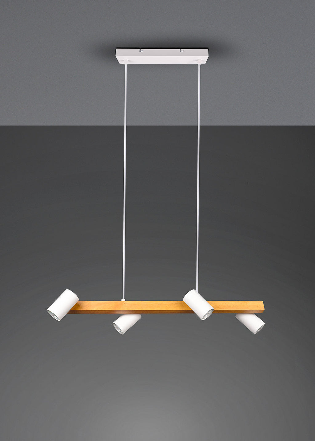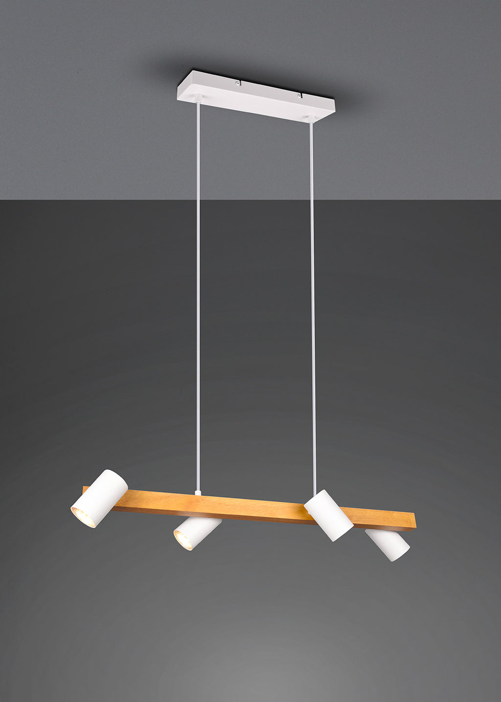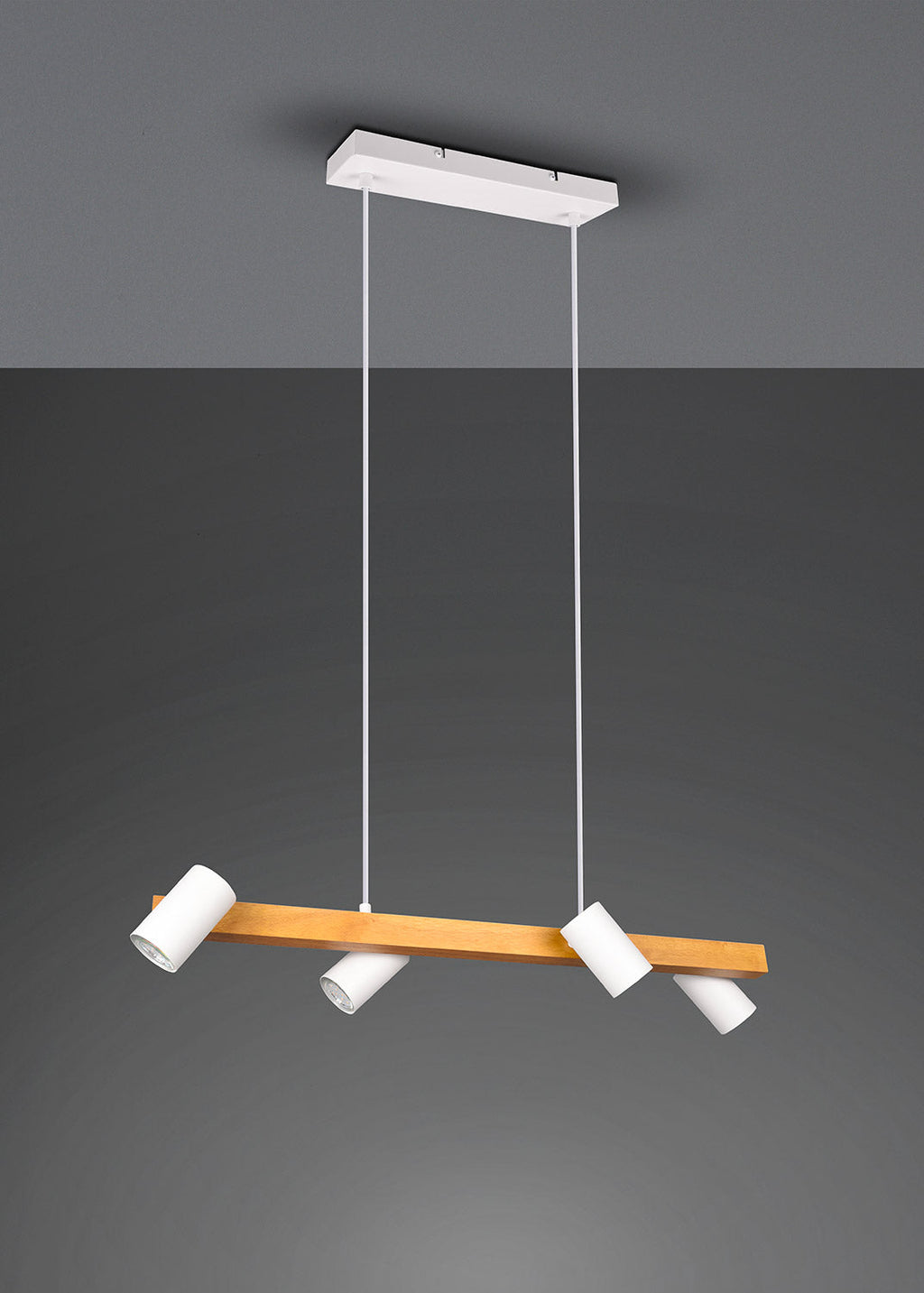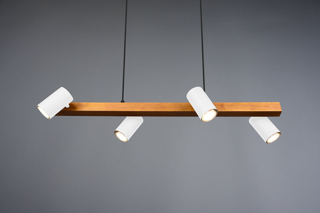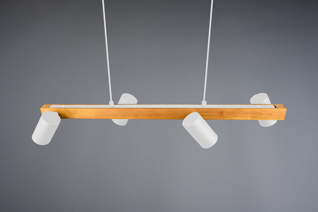Marley Sospensione Rettangolare con Barra Legno 4 Cilindri Bianco Opaco L. 80Cm