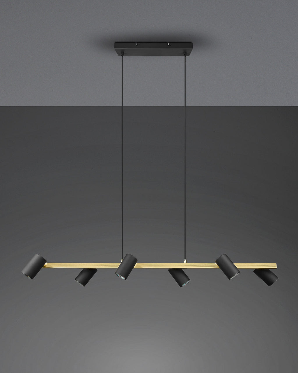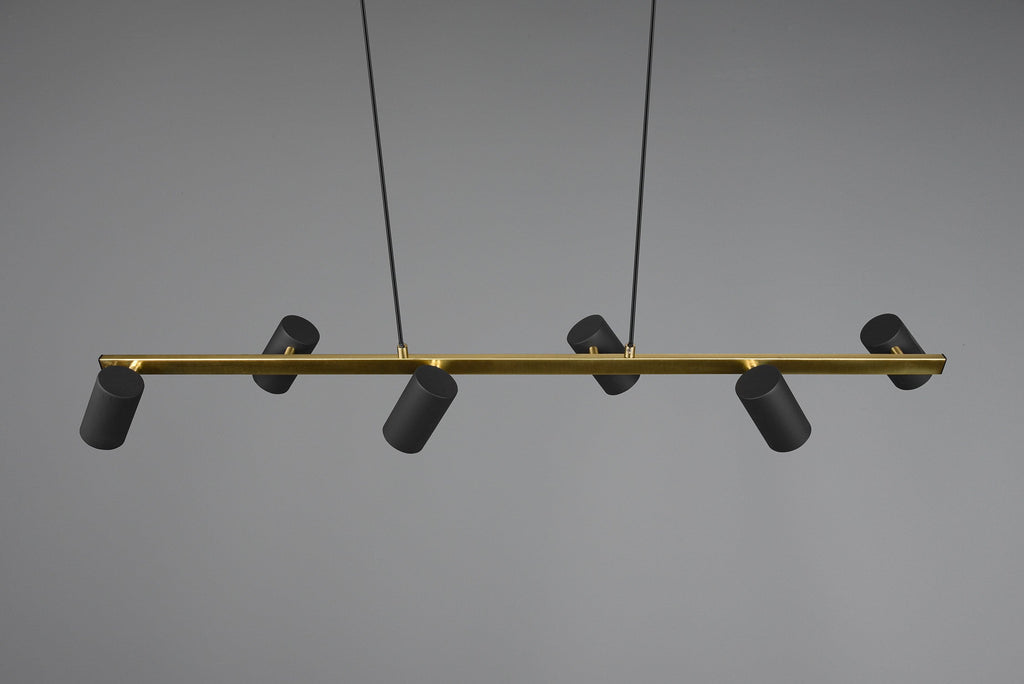 Marley Sospensione Rettangolare con Barra Oro 6 Cilindri Nero Opaco L. 115Cm