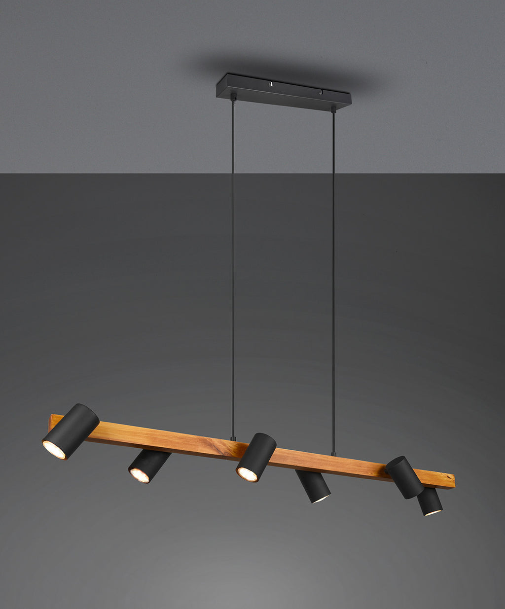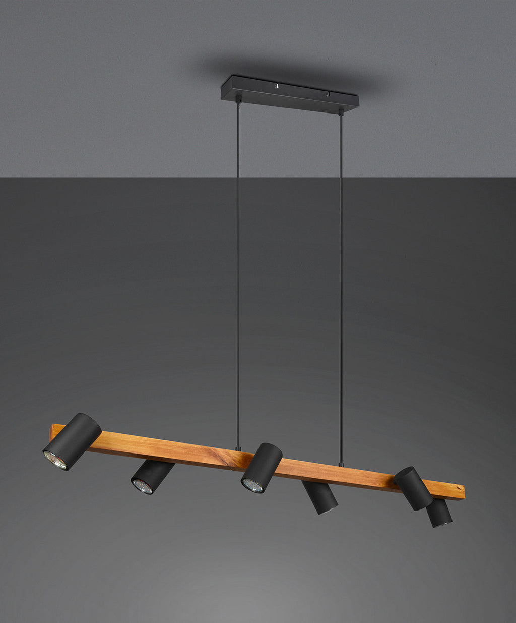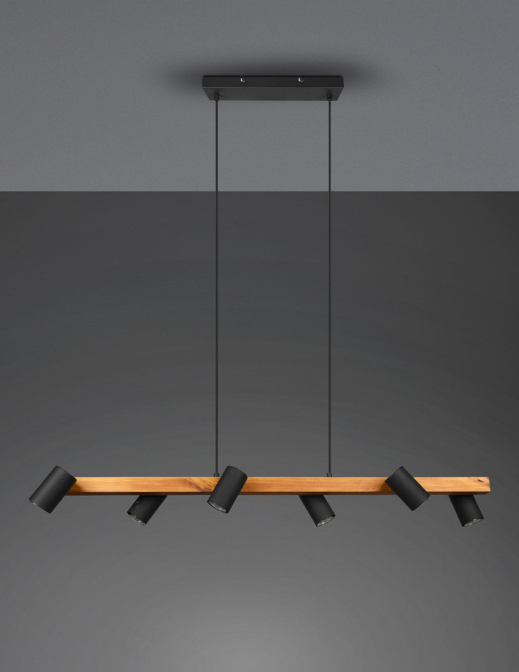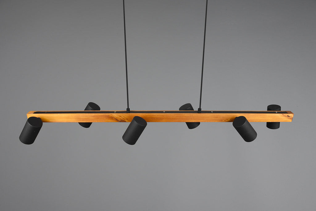 Marley Sospensione Rettangolare con Barra Legno 6 Cilindri Nero Opaco L. 115Cm