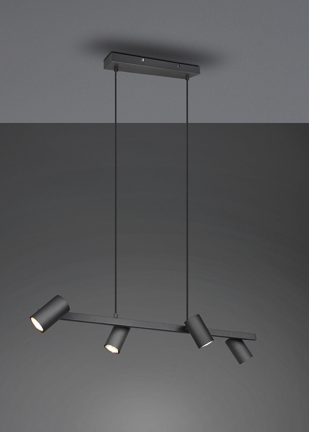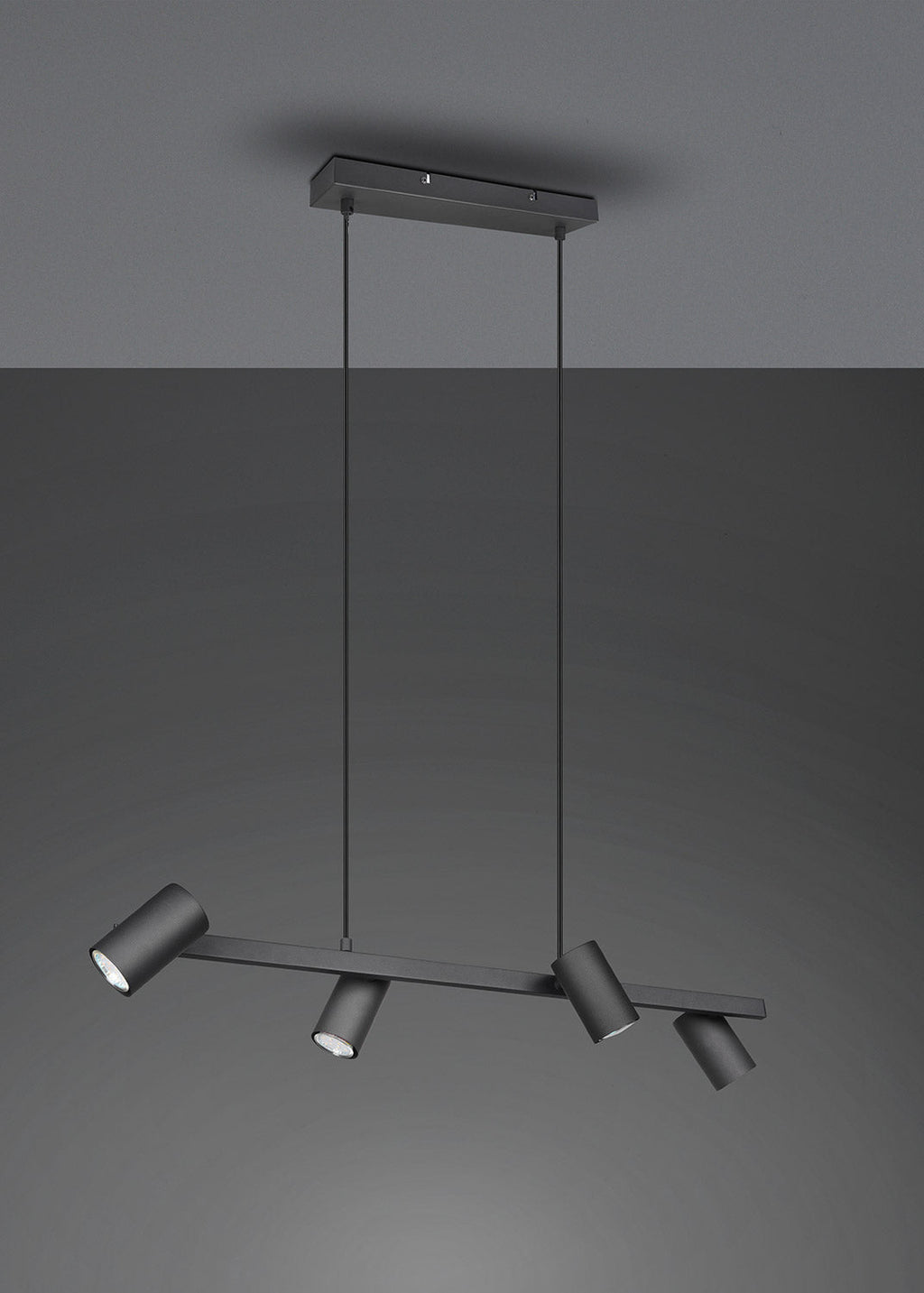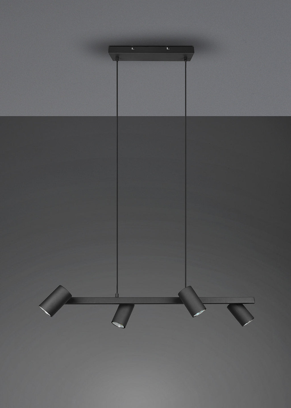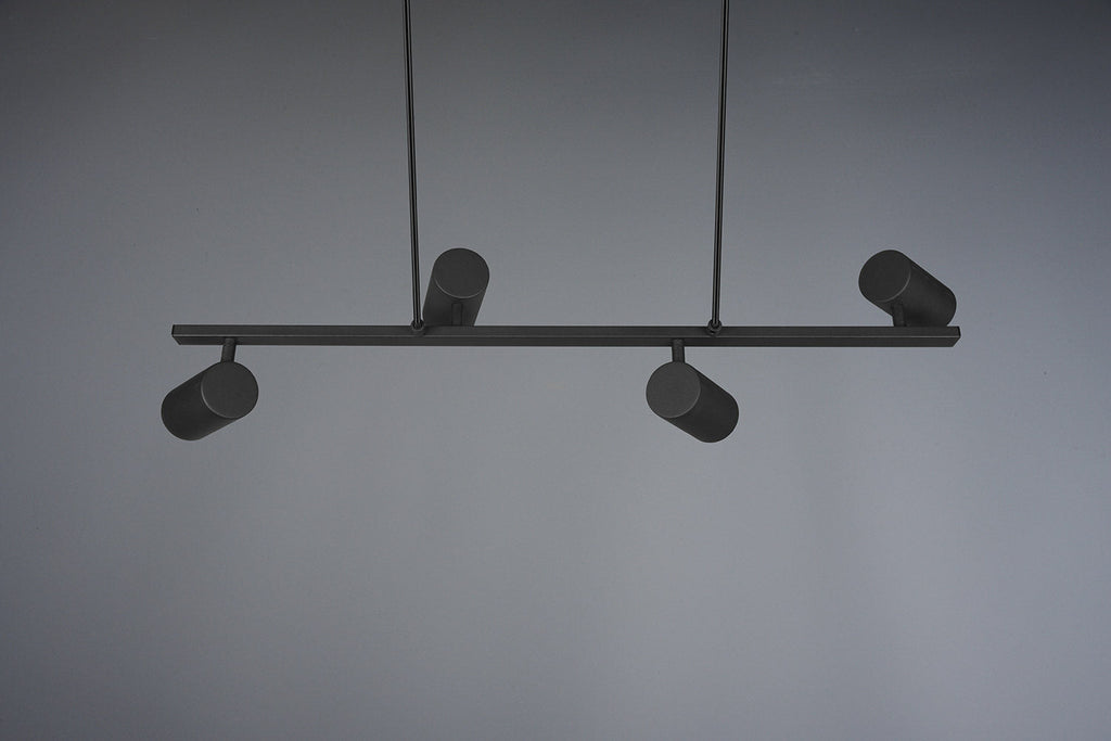 Marley Sospensione Rettangolare Nero Opaco con Barra 4 Cilindri L. 80Cm
