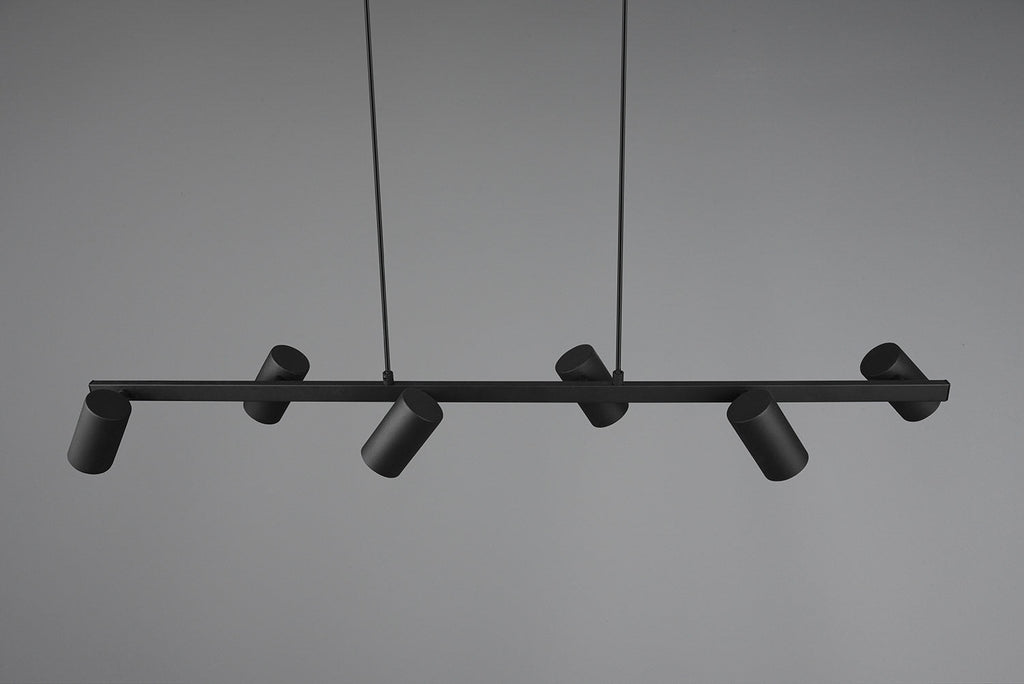 Marley Sospensione Rettangolare Nero Opaco con Barra 6 Cilindri L. 115Cm