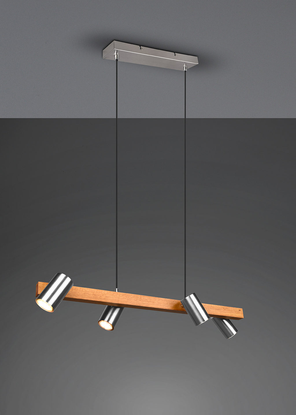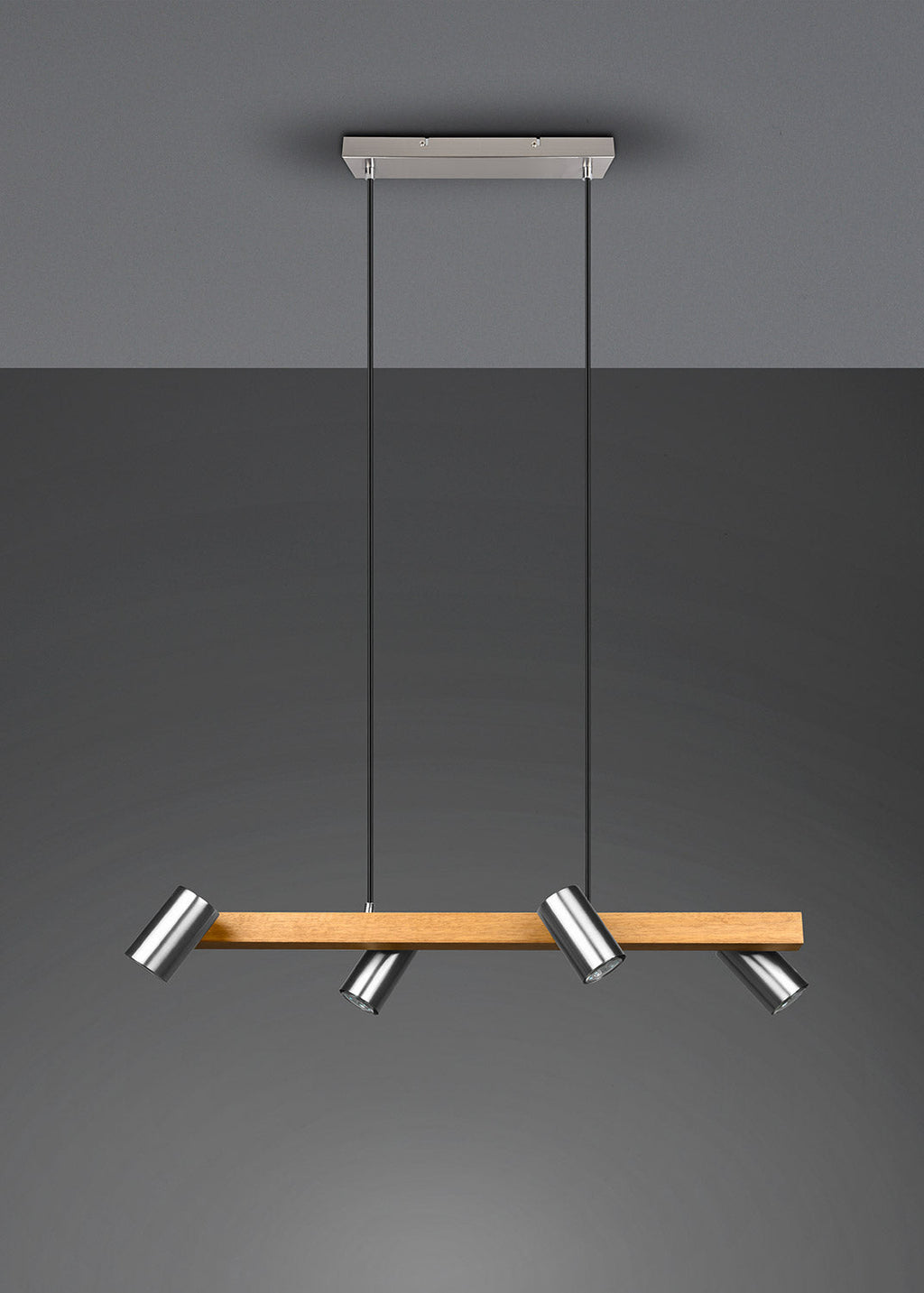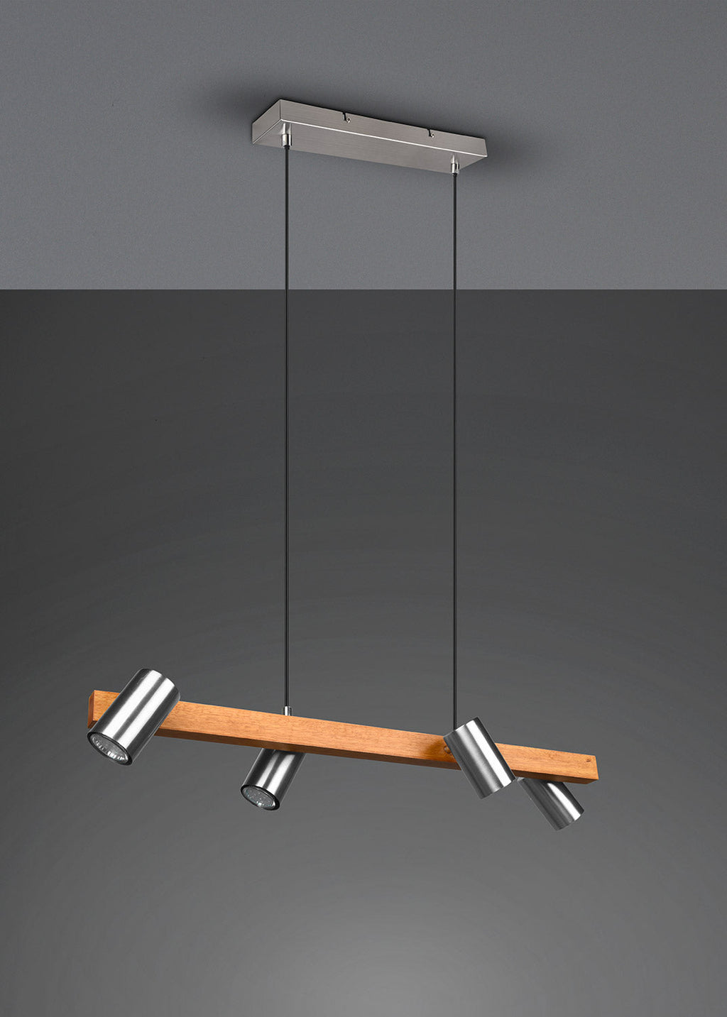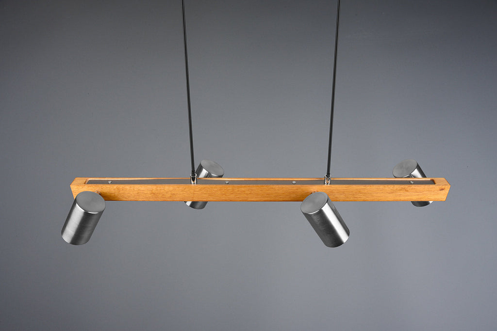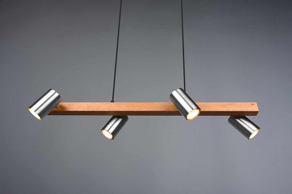 Marley Sospensione Rettangolare con Barra Legno 4 Cilindri Acciaio Satinato L. 80Cm