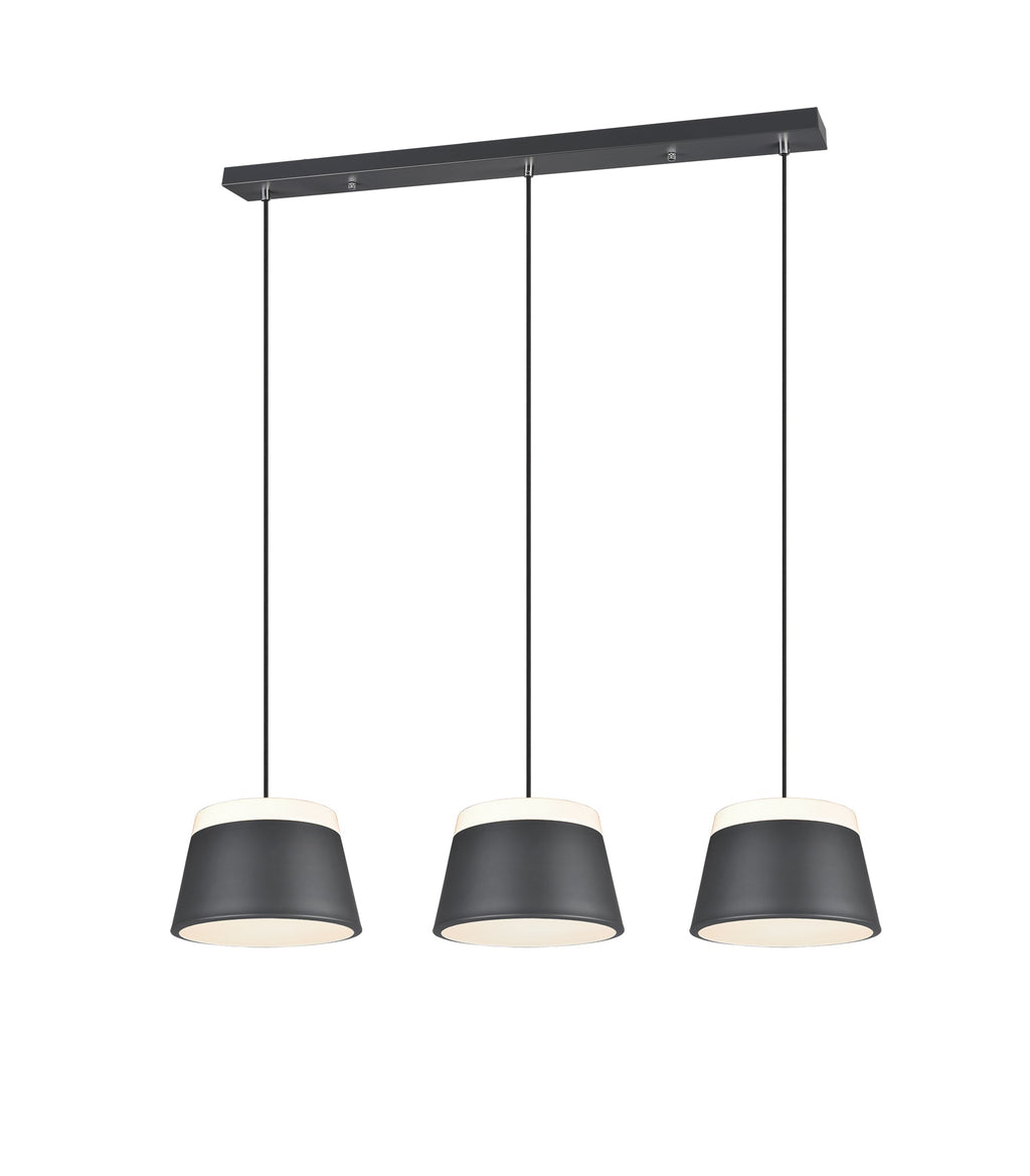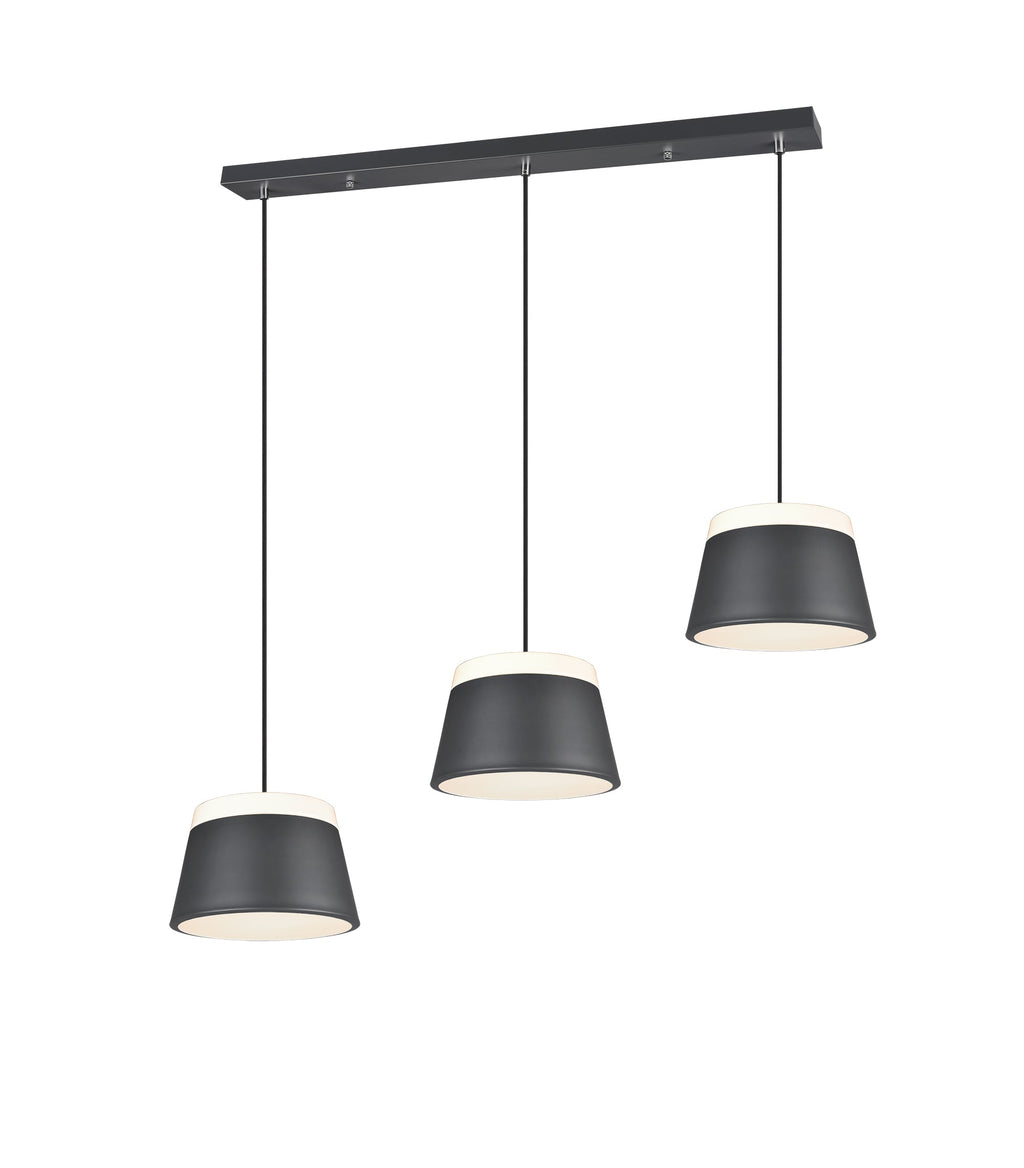 Baroness Sospensione 3 Coni Metallo Nero Con Doppio Diffusore Metacrilato D. 25Cm L.105Cm