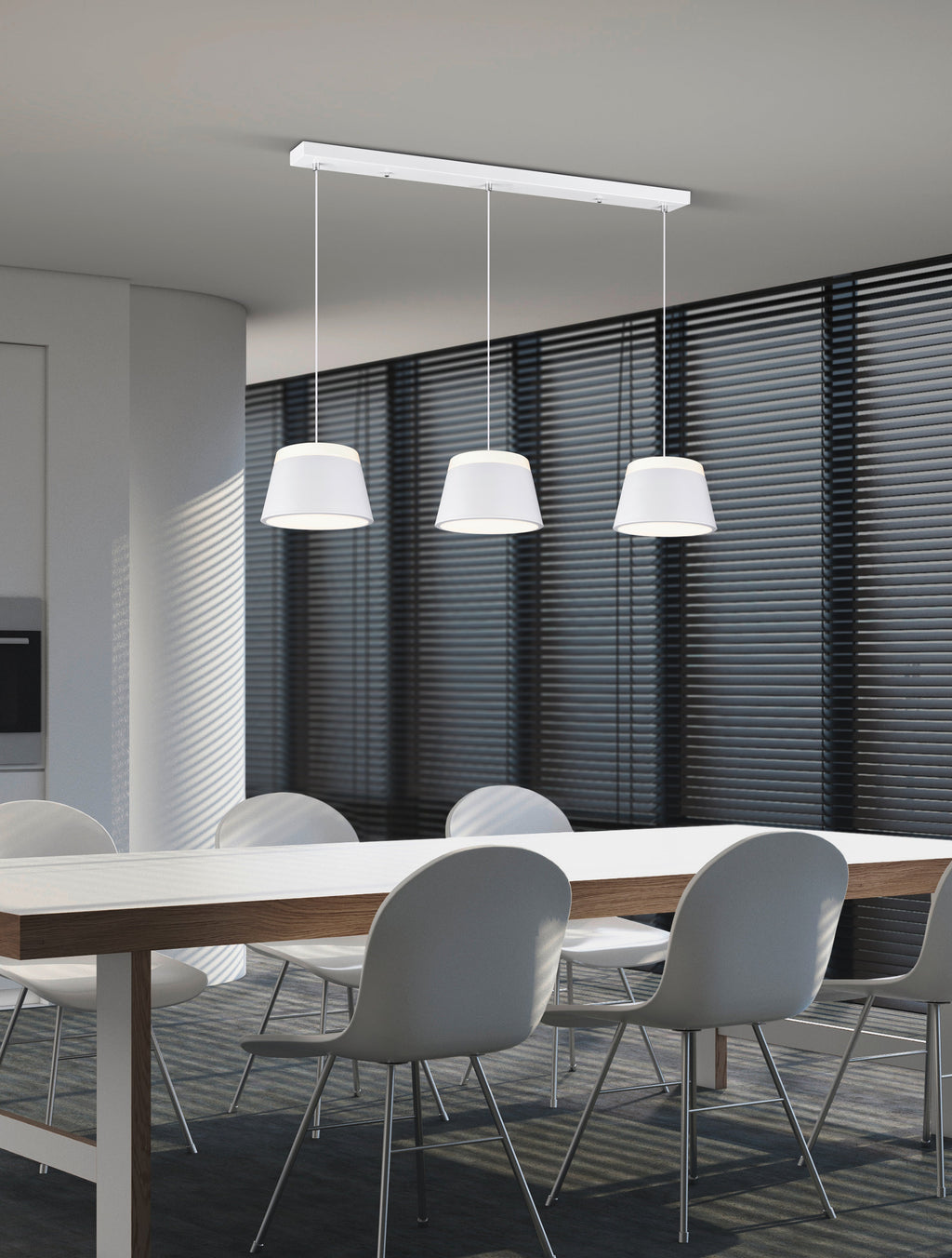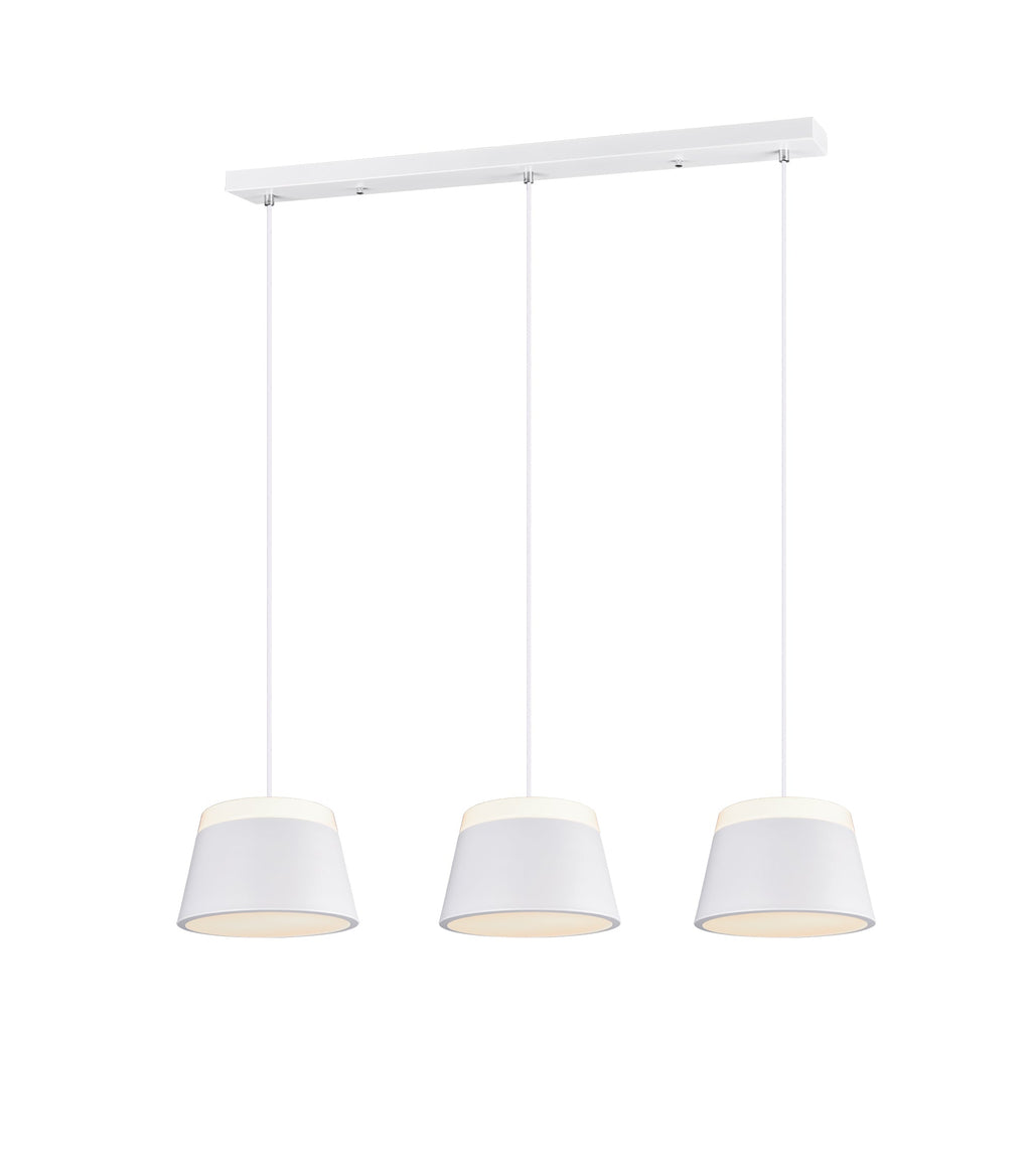 Baroness Sospensione 3 Coni Metallo Bianco Con Doppio Diffusore Metacrilato D. 25Cm L.105Cm