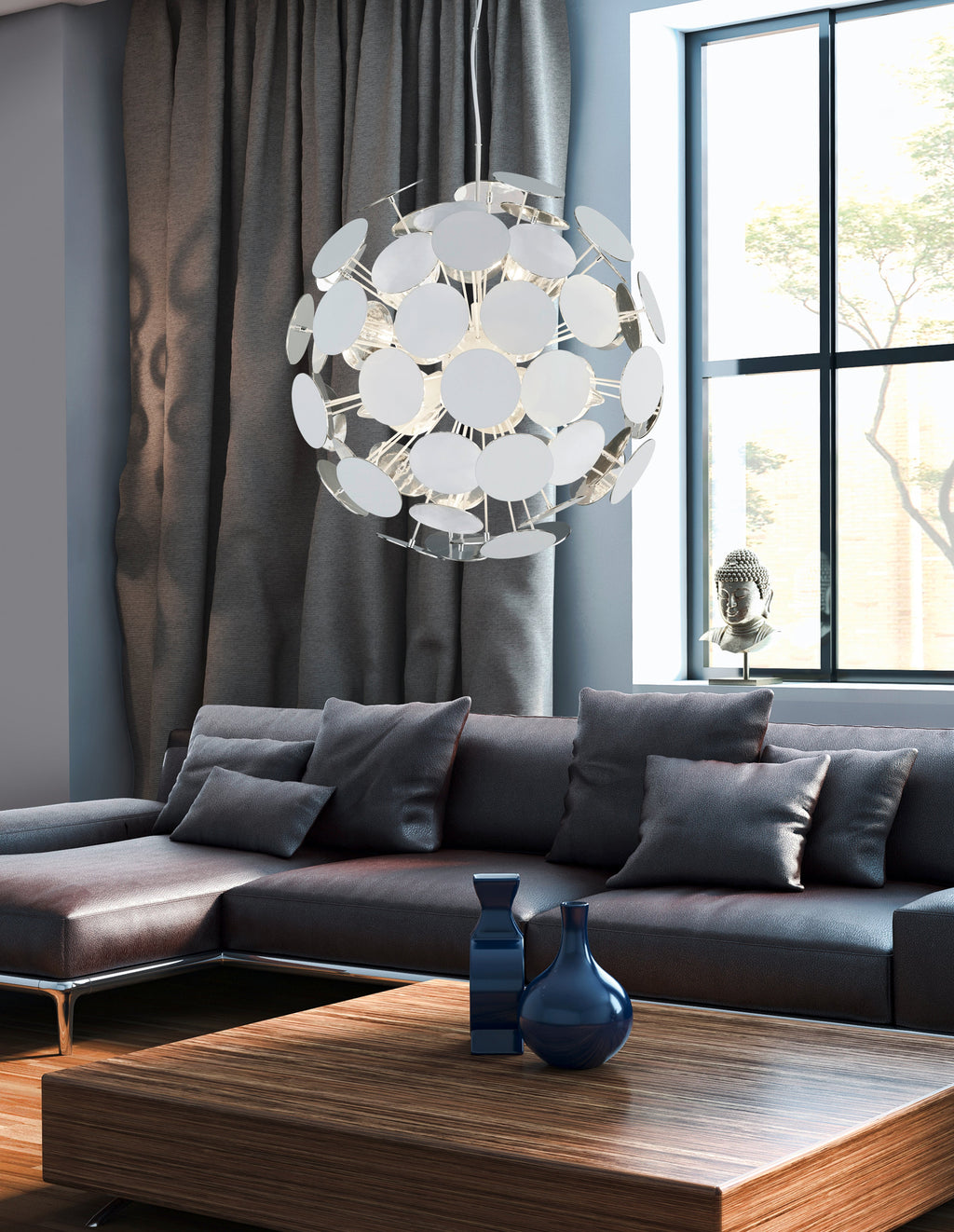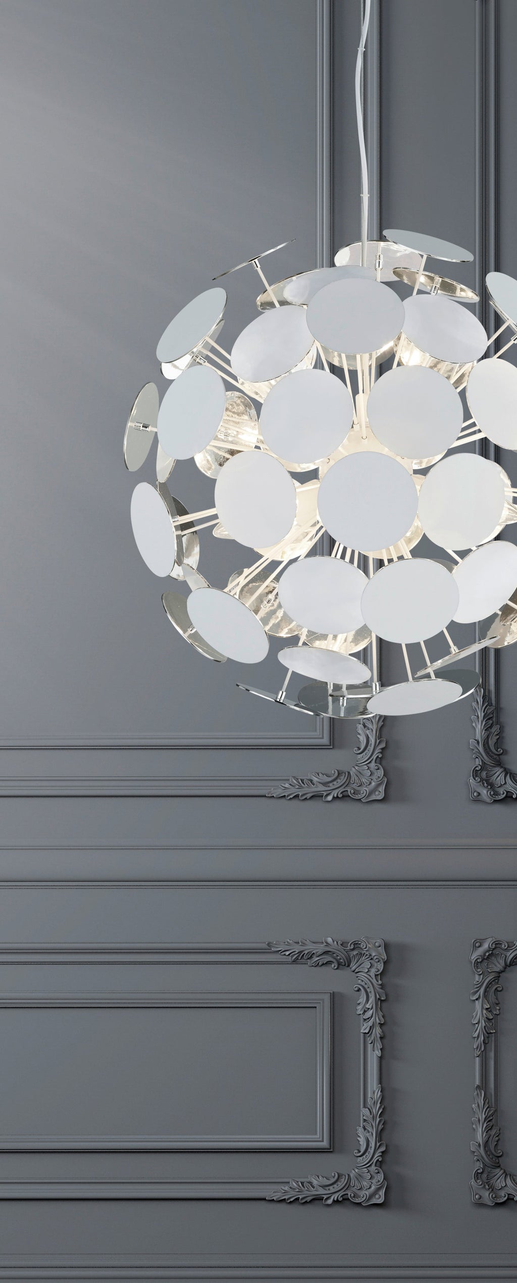 Discalgo Sospensione Sfera Tondi Metallo Bianco Opaco + Argento D. 54Cm