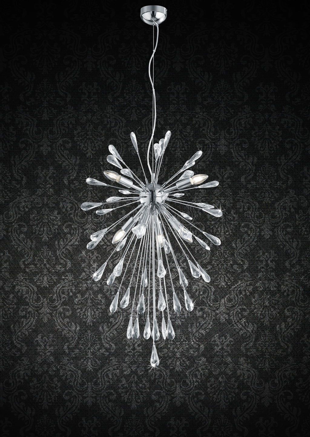 Minsk Sospensione Cromata Con Steli E Goccie Trasparenti D.58Cm, H.88Cm