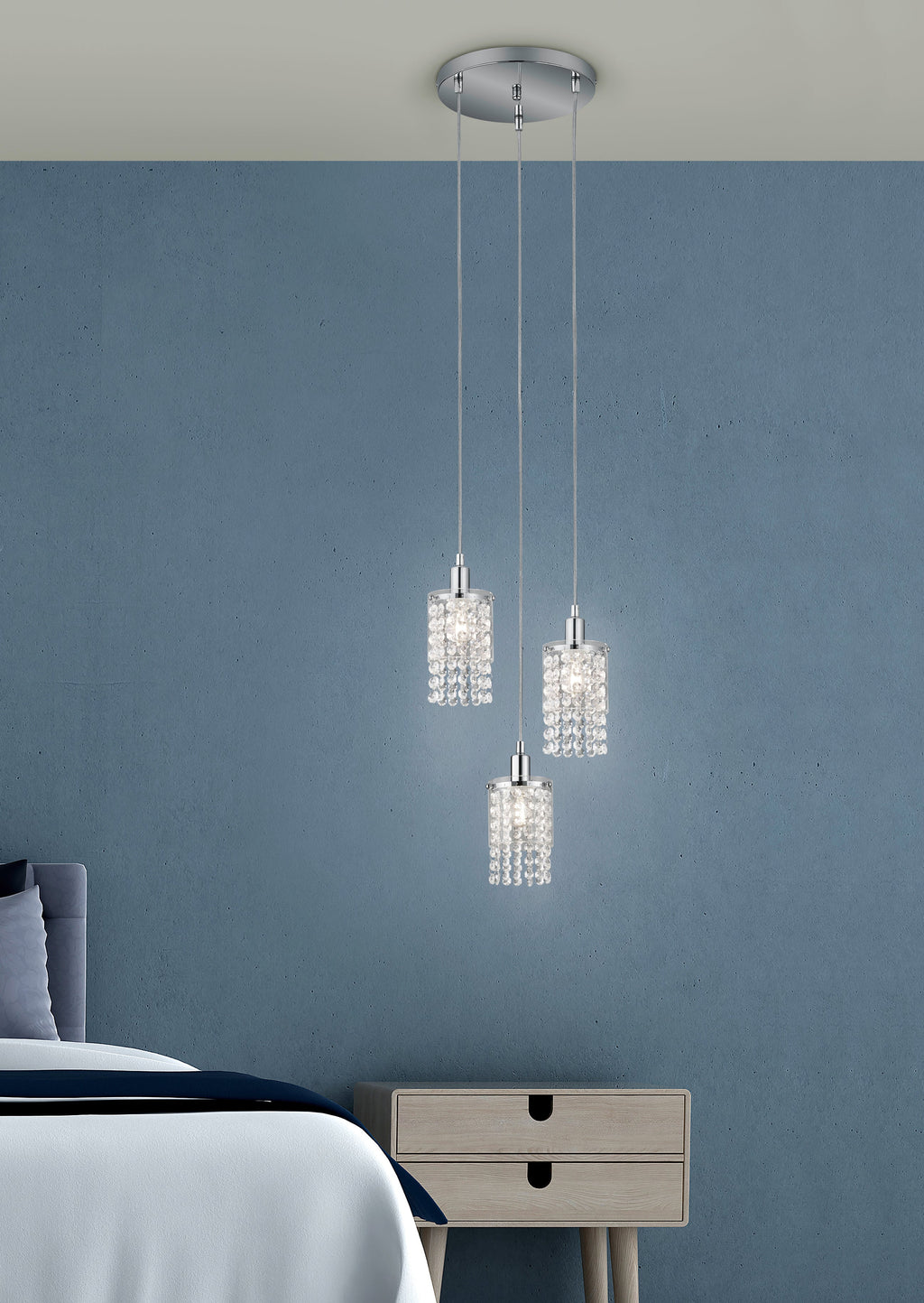 Posh Sospensione 3 Vetri Trasparenti Con Pendagli D. 30Cm