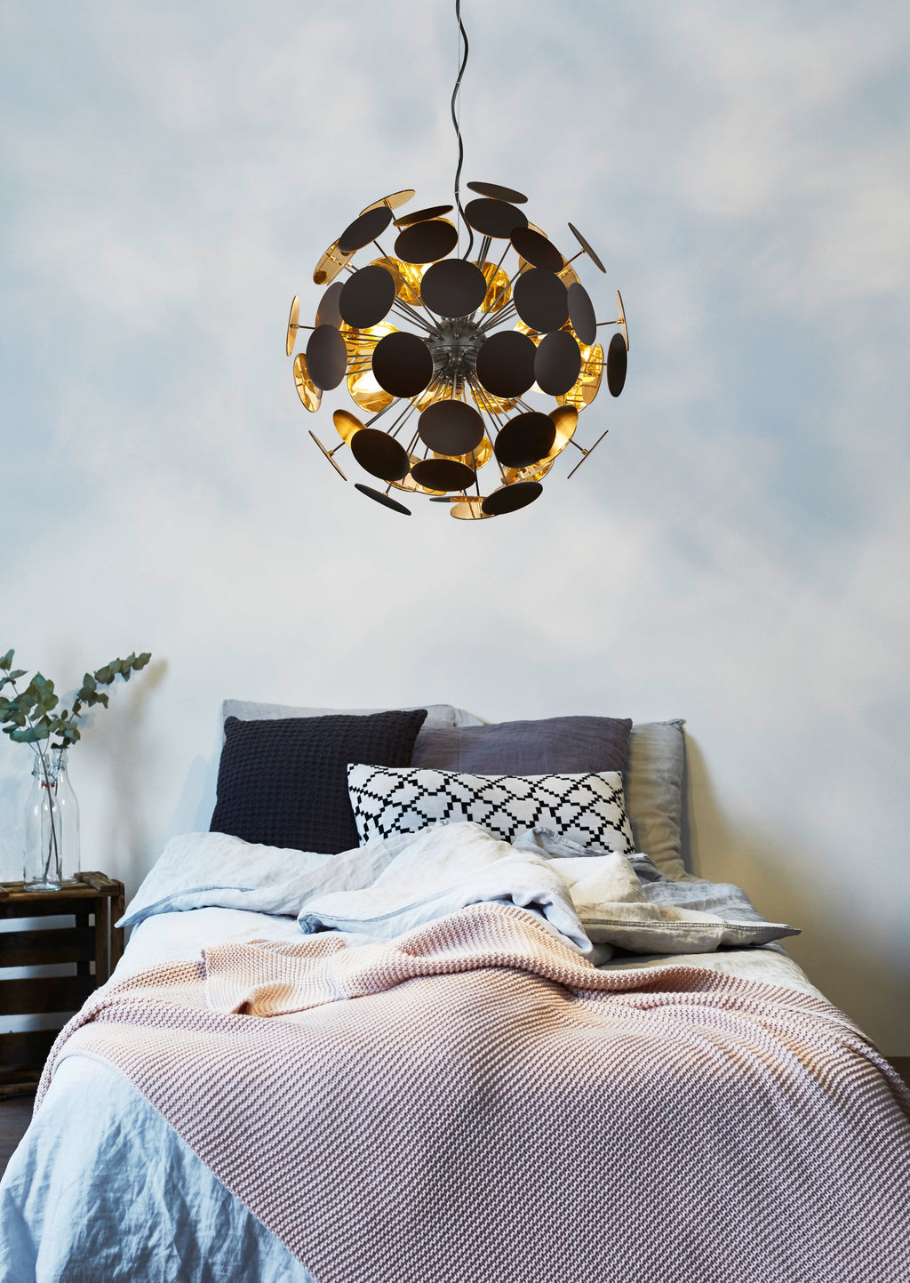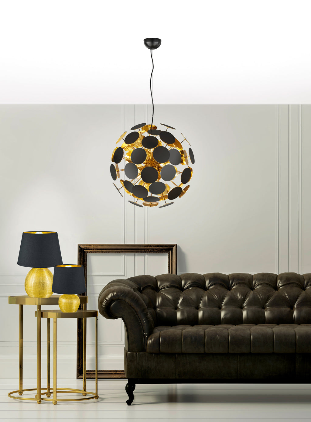 Discalgo Sospensione Sfera Tondi Metallo Nero Opaco + Oro D. 54Cm