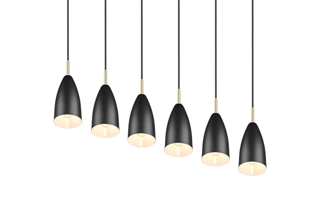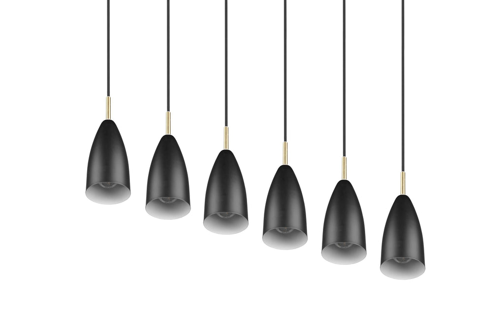 Farin Sospensione Barra 6 Coni Metallo Nero E Ottone Satinato L.90Cm