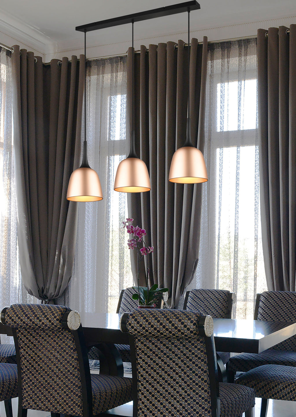 Chiron Sospensione Barra Metallo Nera 3 Diffusori Ottone Satinato L.80Cm