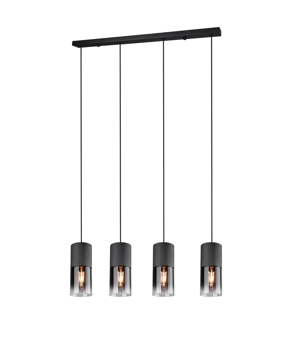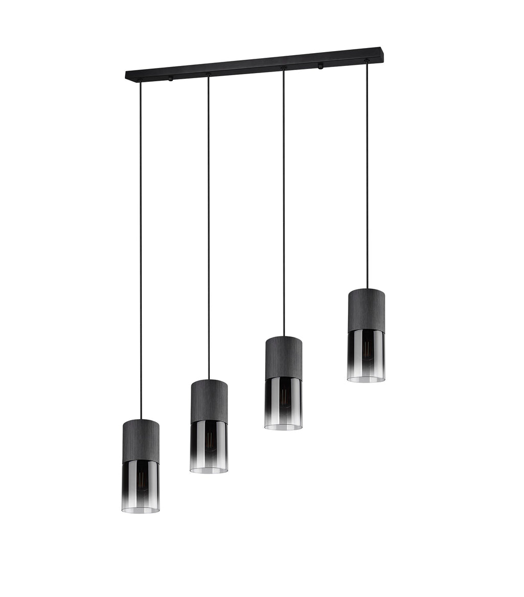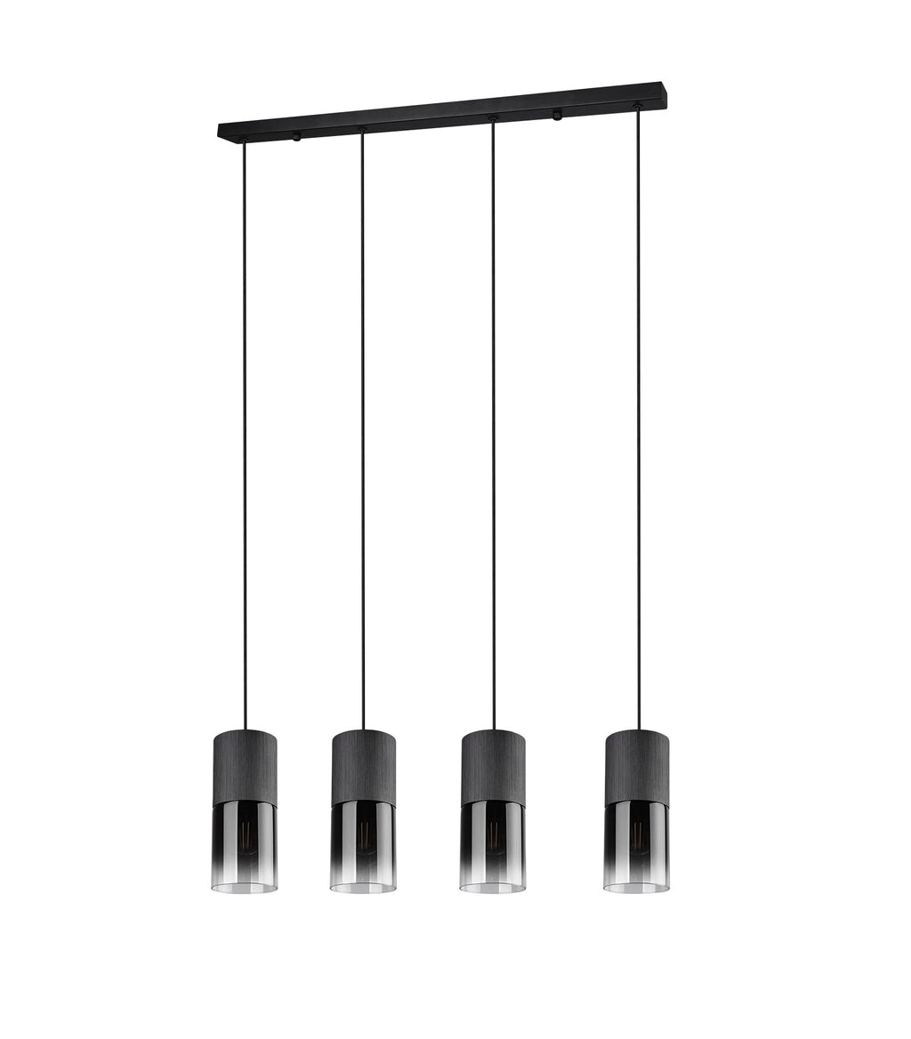 Robin Sospensione 4 Cilindri Metallo Nero E Vetri Fume' E Trasparenti L. 80,5Cm