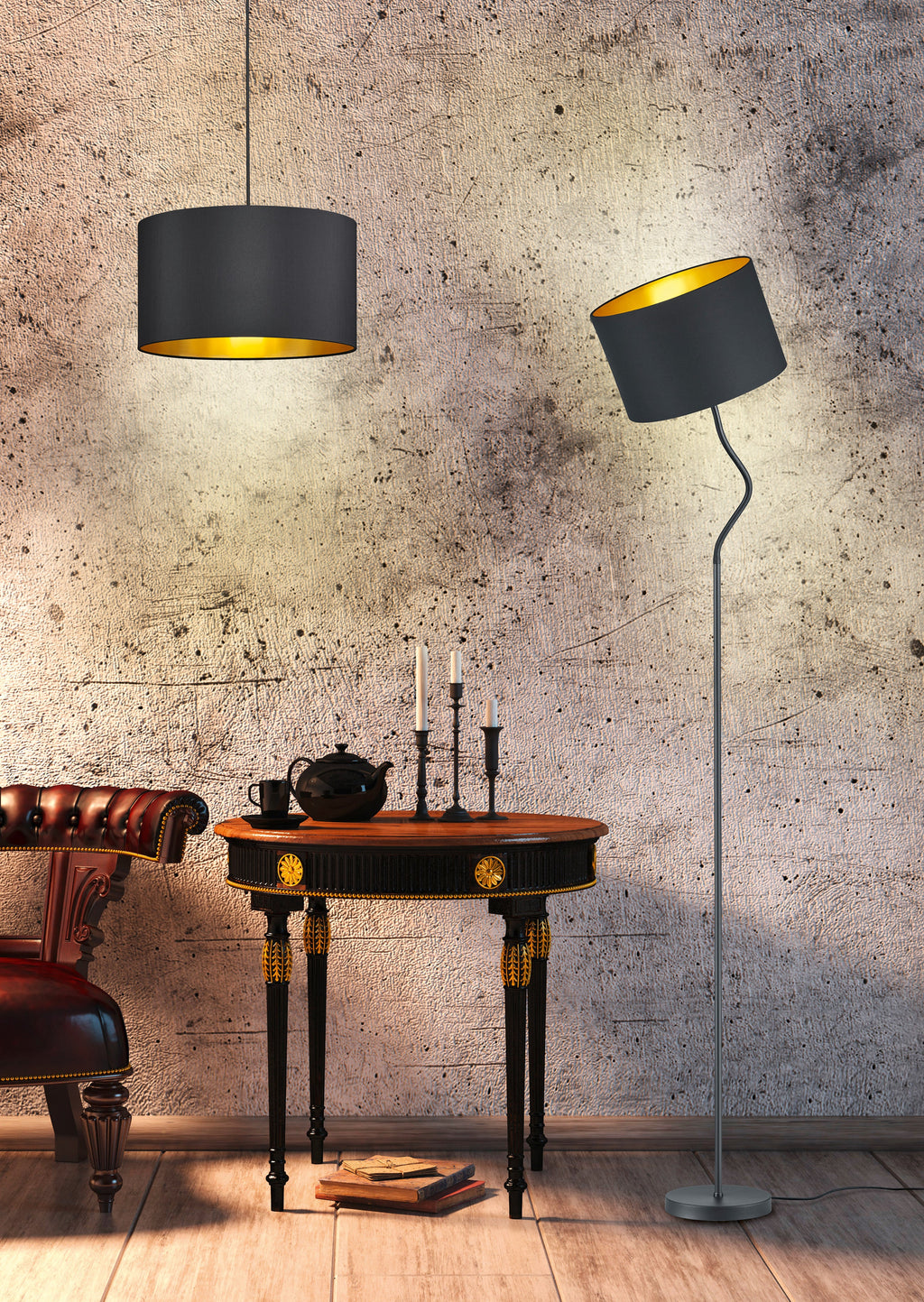Hostel Sospensione Paralume Tessuto Nero Interno Oro D.40Cm