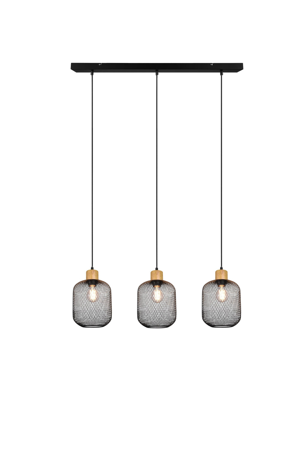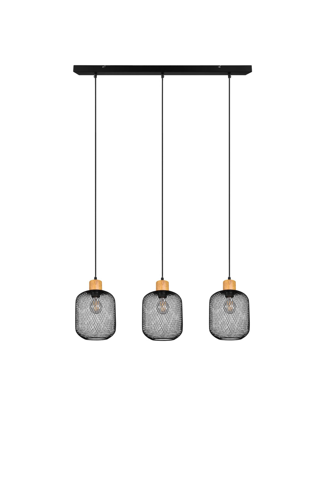 Calimero Sospensione Barra 3 Diffusori A Rete Metallo Nero Con Particolare In Legno Naturale L. 80Cm
