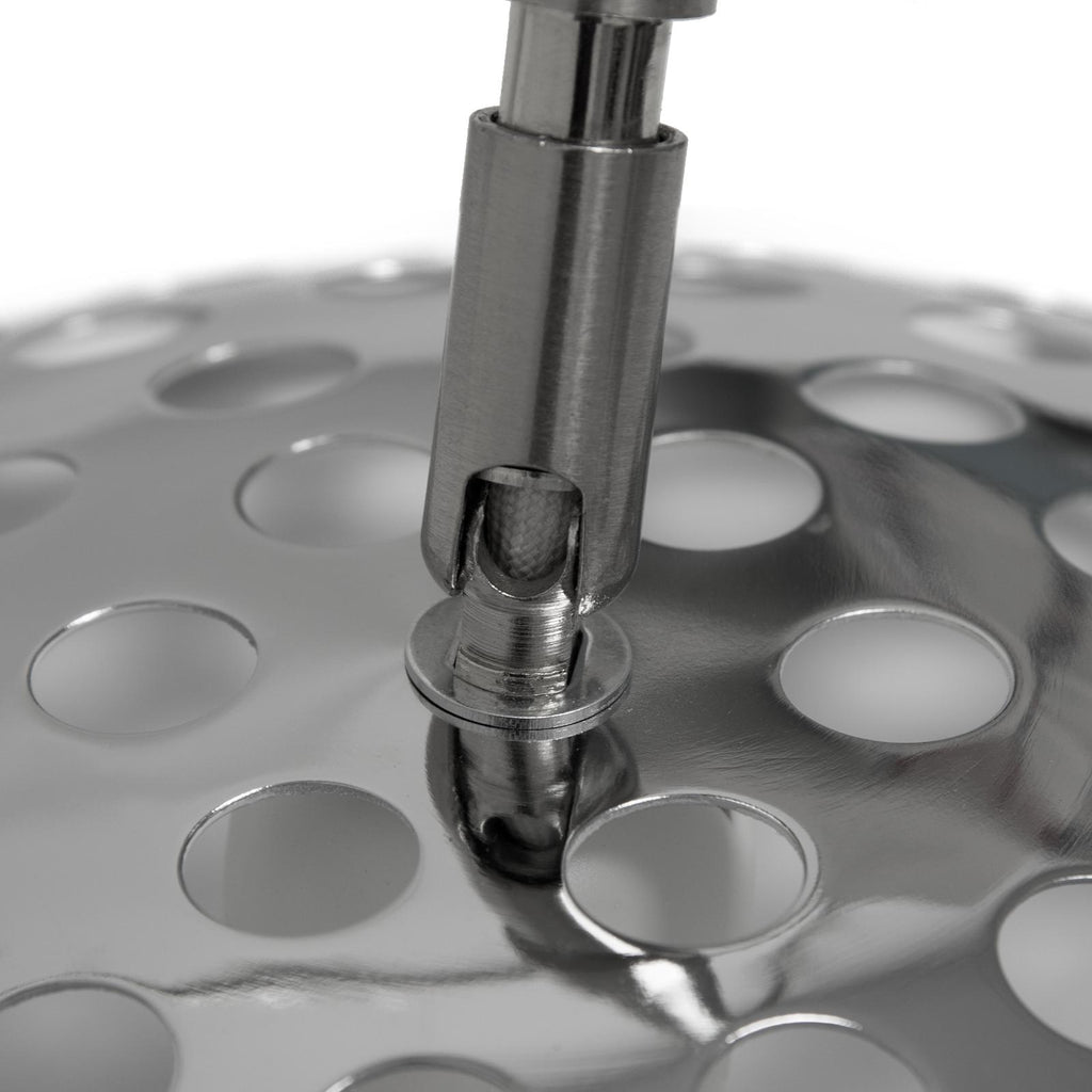 La cupola è formata da due pezzi: uno fisso a forma di calotta forata per facilitare il raffreddamento del portalampada, l'altro un anello di alluminio mobile, appoggiato al primo, in modo da poter essere rettificato in posizione, a seconda dell'altezza del terzo settore dell'arco.