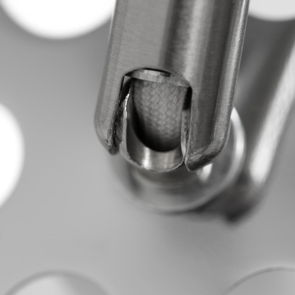 Lo stelo arcuato è costituito da tre settori in profilato di alluminio capaci di consentire, scorrendo l'uno dentro l'altro, l'avanzamento telescopico e il passaggio nascosto dei fili. Ciò conferisce all'arco più ampiezze, con il posizionamento del riflettore a tre diverse altezze.