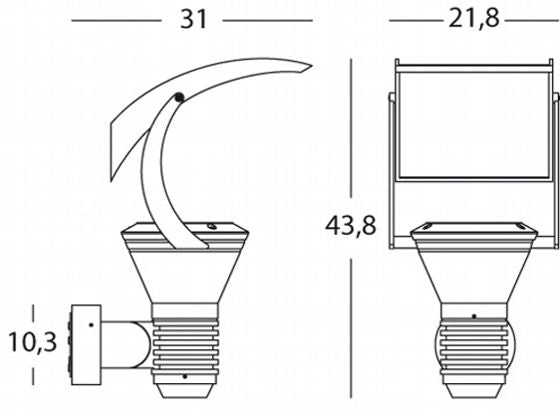 Lampada applique grande con vela colore grigio per esterno linea sail. Struttura completamente in pressofusione di alluminio. Trattamento anticorrosivo con Verniciatura a polveri epossidiche. Diffusore in vetro trasparente. Parabola riflettente in alluminio. Guarnizione siliconica e viti in acciaio inox. Controbase ed accessori per il fissaggio. Portalampada in porcellana con attacco E27. Adatta per lampade a risparmio energetico, incandescenza e PAR 38. Lampada esclusa. Alimentazione 230V ~ 50Hz. Classe di protezione: IP44 Potenza massima lampade: 80W