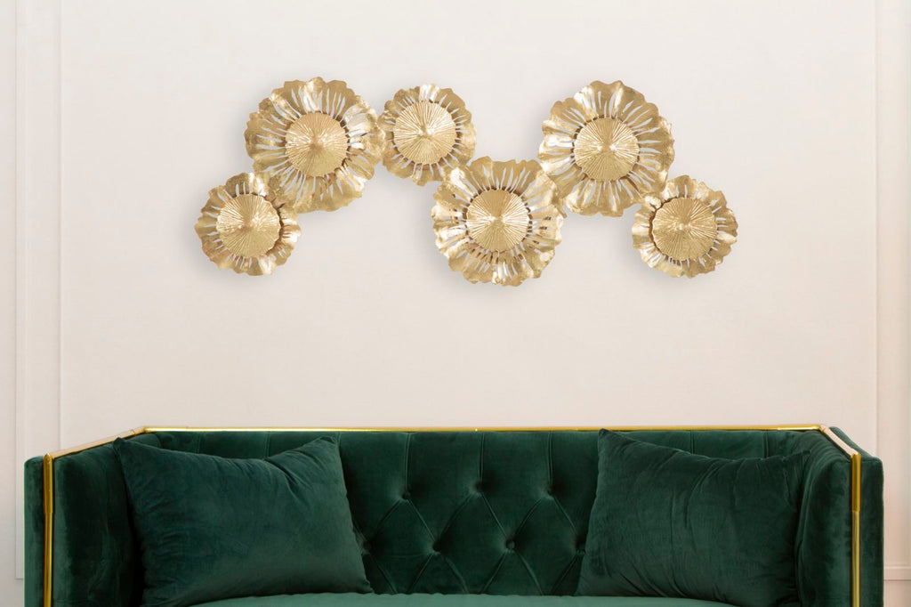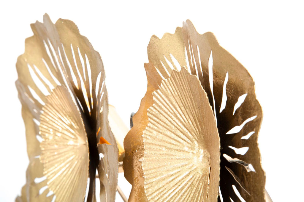Lampada da muro in metallo dorato con 5 punti luce. Il disegno floreale richiama la natura. Lo stile glam combina dettagli chic e stravaganti. Perfetta per donare un tocco di luce ed eleganza al tuo ambiente glam.