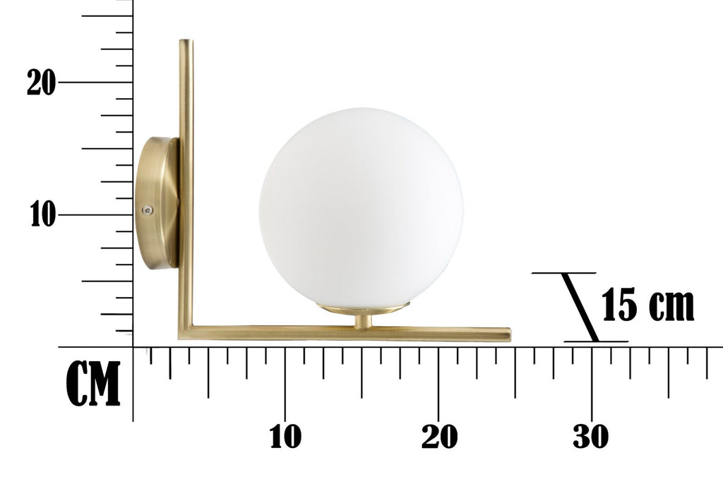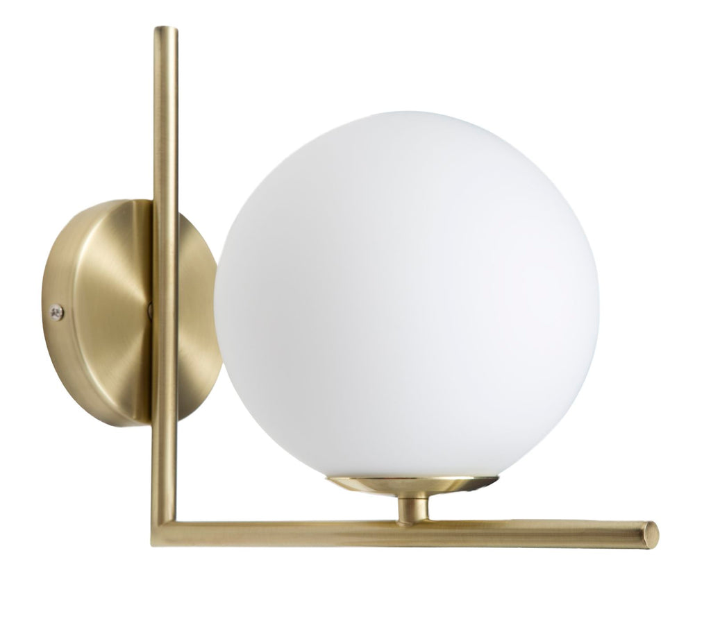 Applique in metallo dorato con sfera in vetro opaco. Linee essenziali e pulite ne caratterizzano l'eleganza. Lampade da terra, da tavolo, applique e lampadari! Con le sue sfere e le sue finiture in oro la linea Glamy dona una luce soffusa e sicuramente glam alle tue stanze!