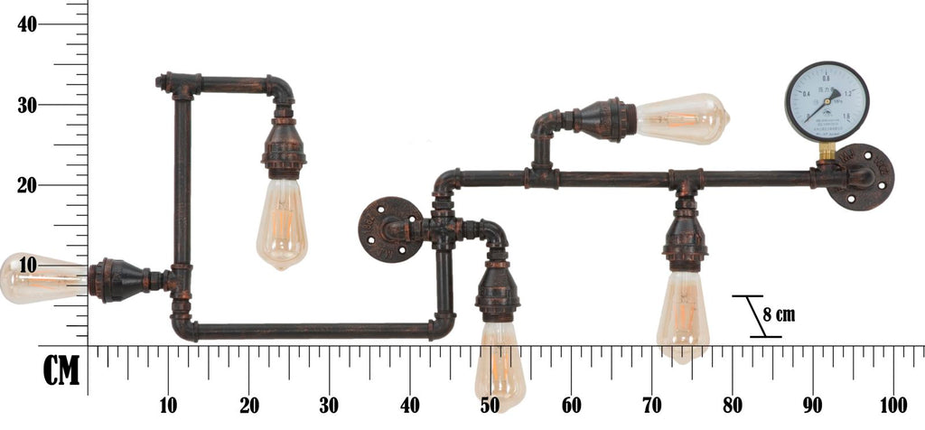 Lampada da Muro Manhattan 5 Luci 100x8x34 cm in Ferro