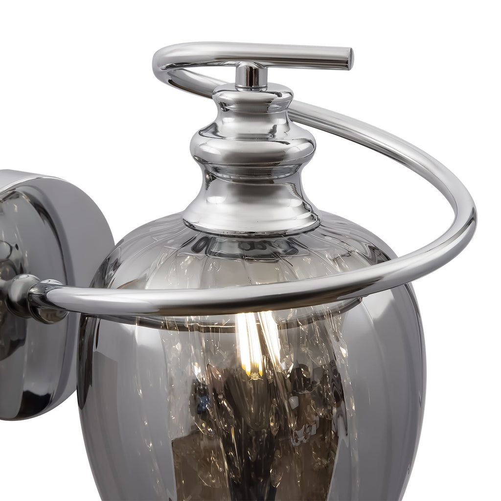 Struttura in Metallolo, diffusori in vetro trasparente (MOD044) o fumé (MOD033). Pendenti decorativi in cristallo.