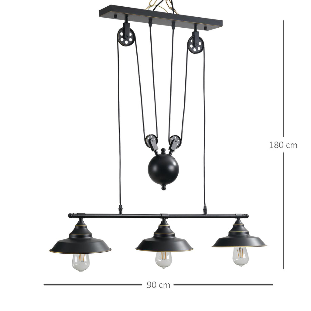 Vuoi dare carattere alla tua sala da pranzo? Questo lampadario in stile vintage è la soluzione ideale per valorizzare ogni tipo di arredo, da quelli in stile rustico a quelli più moderni. La struttura è costruita in metallo nero ed è dotata di quattro pulegge e di una sfera centrale per bilanciare il peso degli elementi. Elegante, raffinato e originale, questo lampadario è la scelta giusta per tutti gli amanti del design!