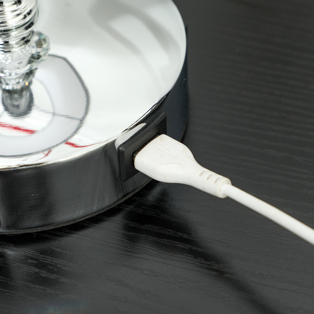 Lampada da Tavolo Base con Cristalli in Vetro con Porta USB Ø23x45 cm Bianco e Argento