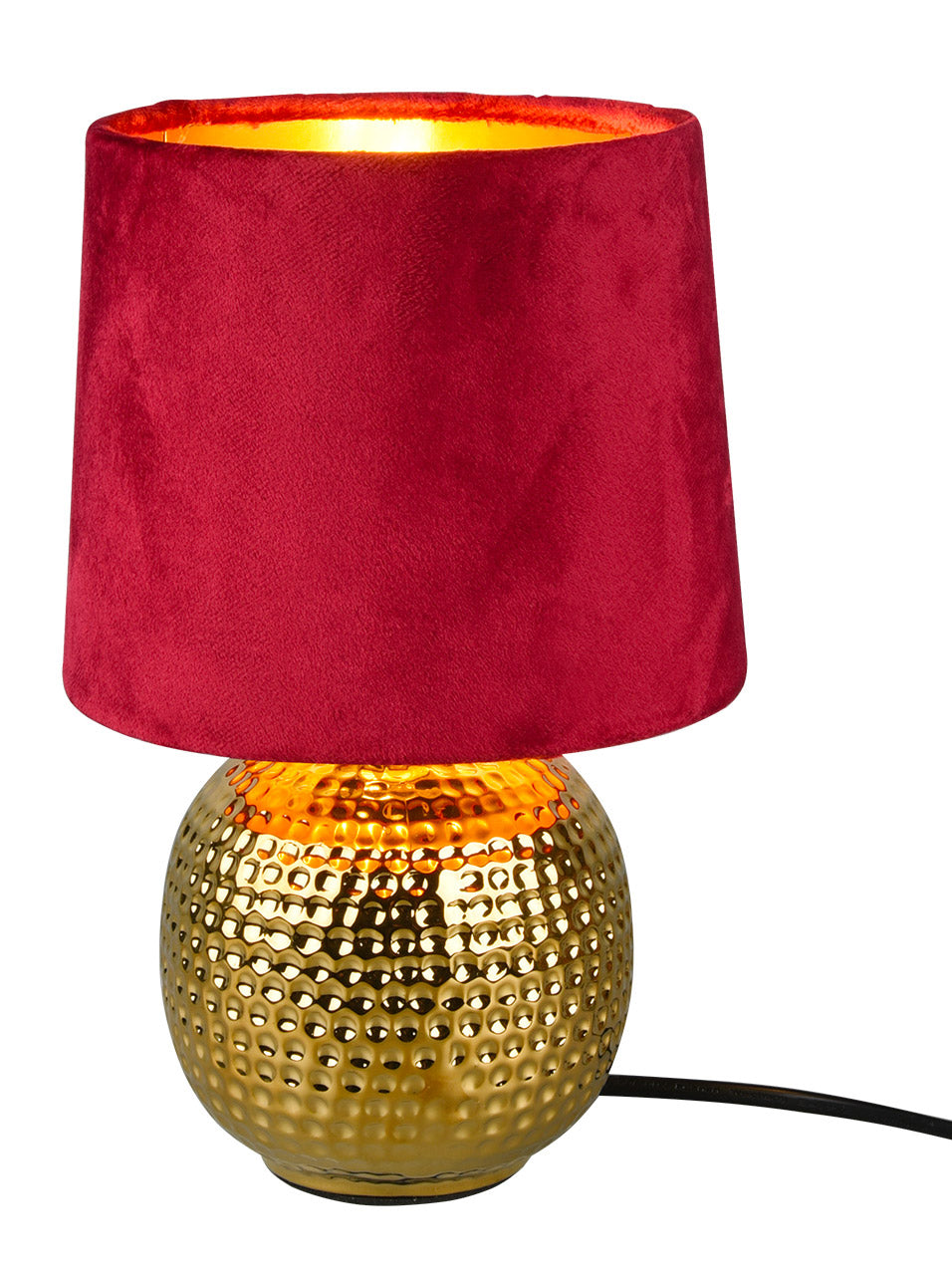 Sophia Lampada Da Tavolo Base Ceramica Oro e Paralume Effetto Velluto Rosso H. 26Cm