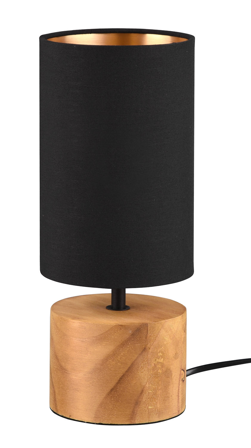 Woddy Lampada Da Tavolo Base Cilindro Legno e Paralume Nero H. 30Cm X D. 12Cm