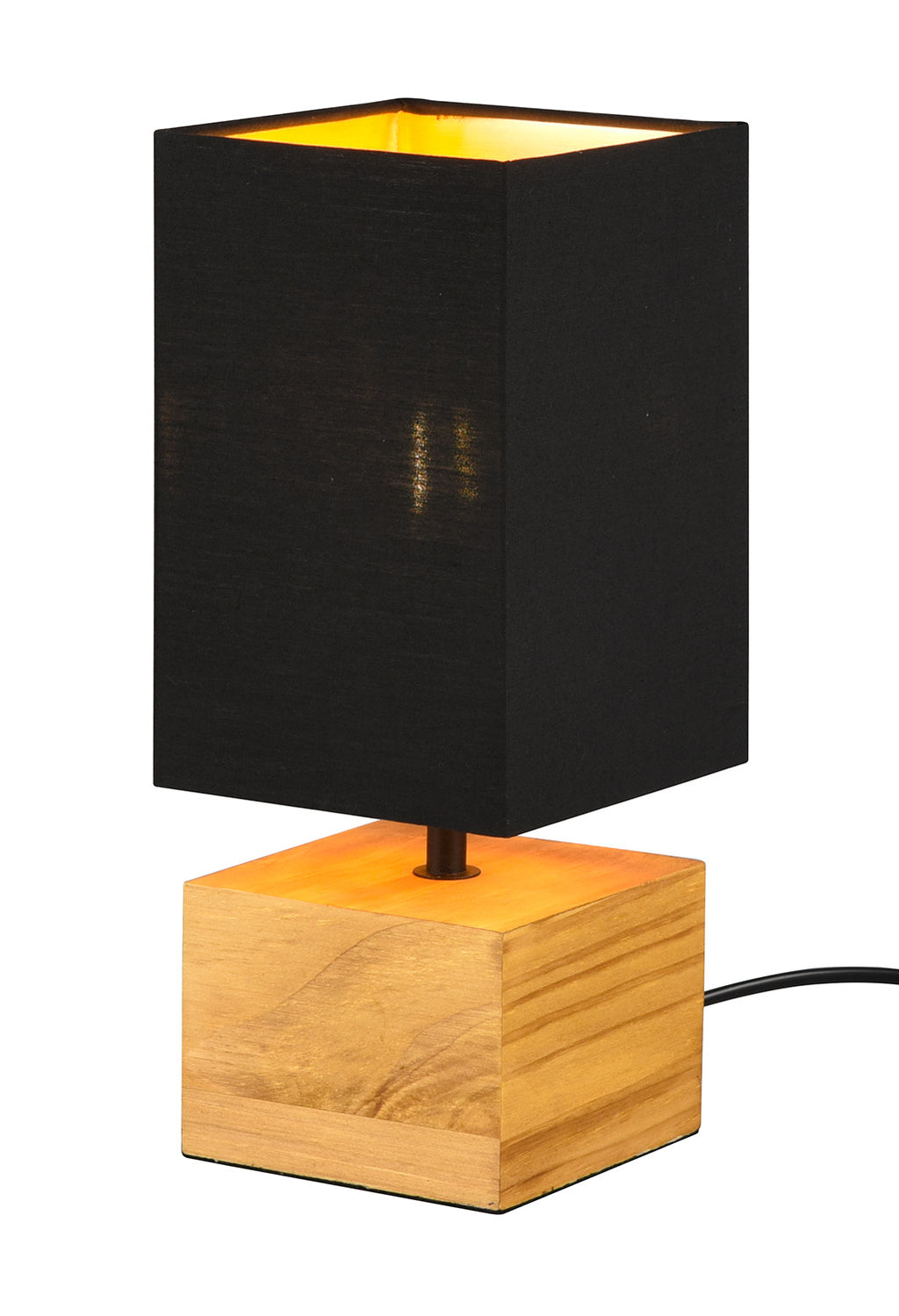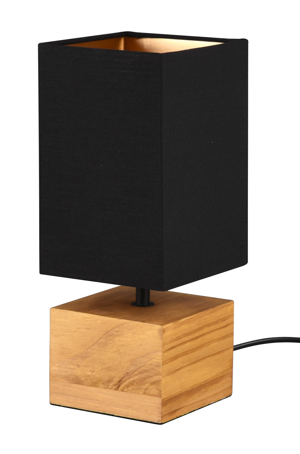 Woddy Lampada Da Tavolo Base Quadrata Legno e Paralume Nero H. 30Cm