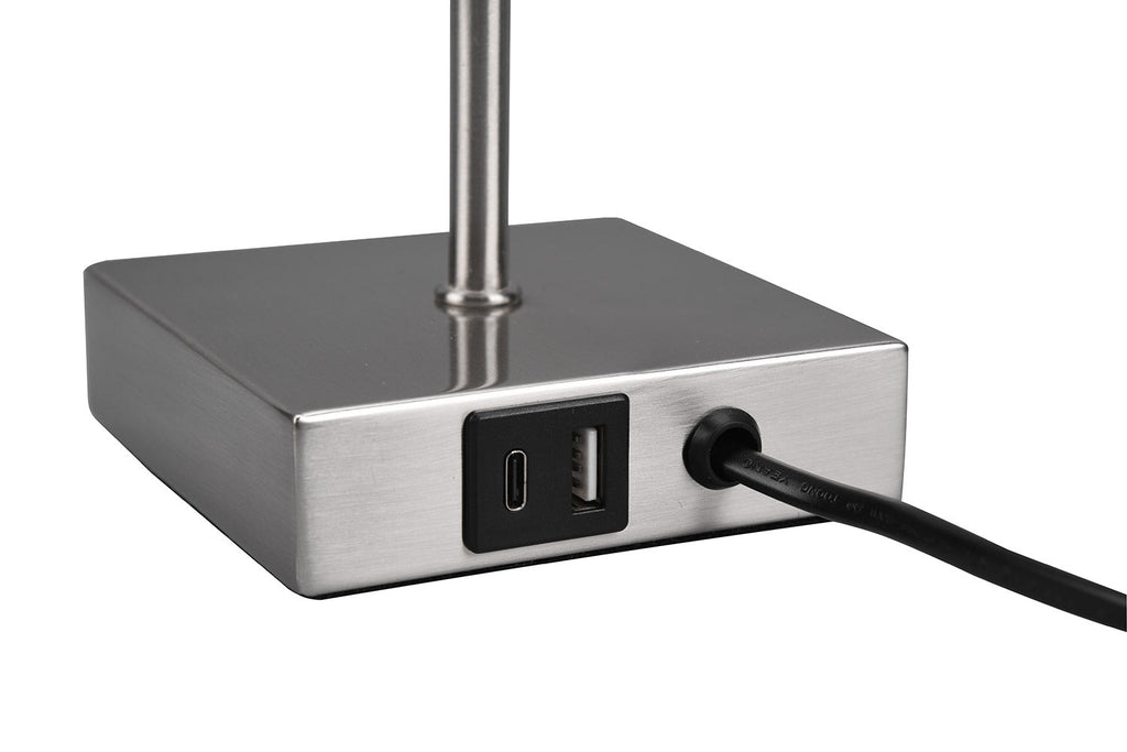 Ole Lampada Da Tavolo Acciaio con Paralume Bianco con Interruttore A Corda con Doppia Porta Usb ( Usb + Usb-C ) Per Ricarica H. 30Cm