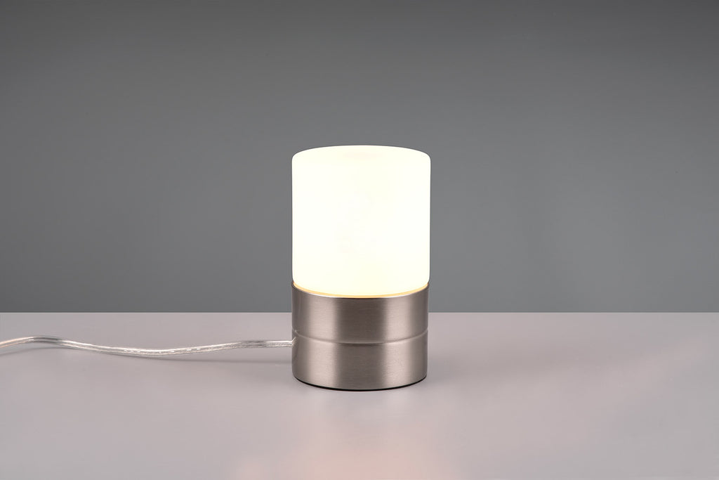 Ary Ii Lampada Da Tavolo Acciaio Cilindro Vetro Bianco H. 15Cm