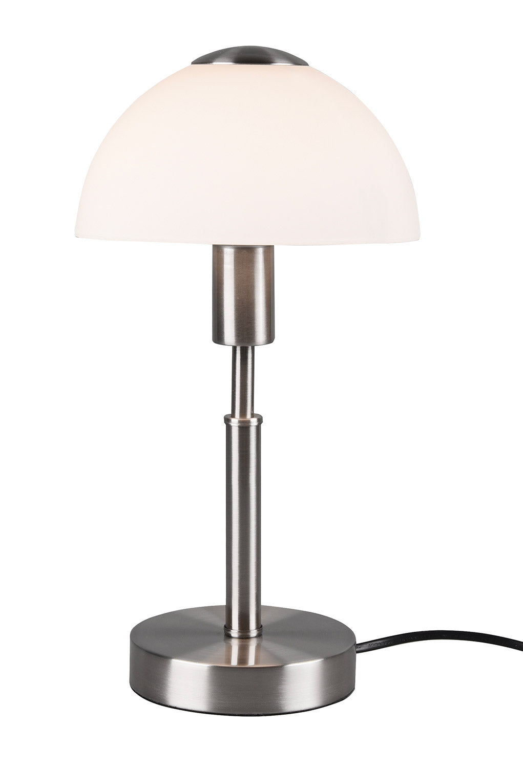 Don Ii Lampada Da Tavolo Cupola Vetro Bianco e Metallo Acciaio Satinato con Interruttore H. 33Cm